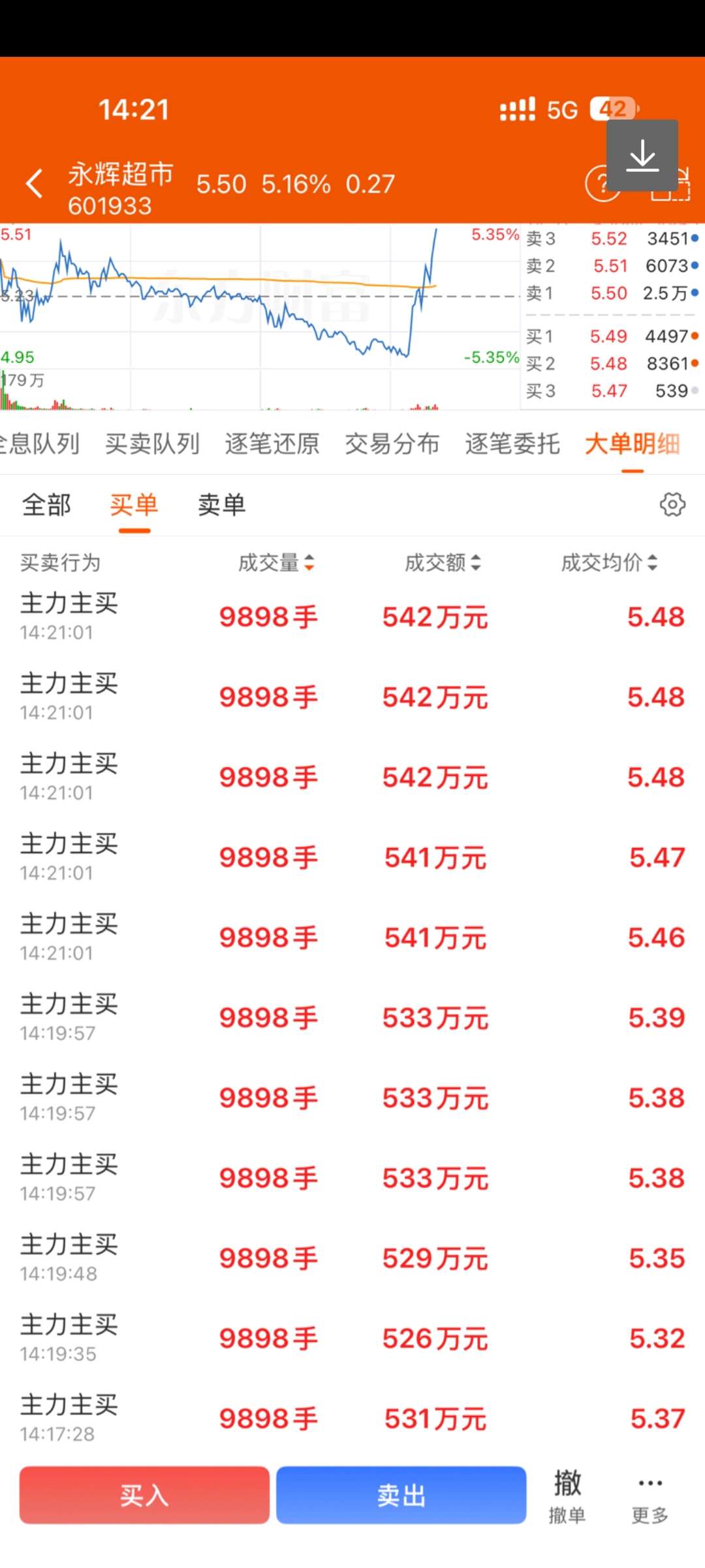 下午开盘永辉绿两个多点给出的观点,今天释放获利盘和套牢盘,有资金承接筹码,明天看