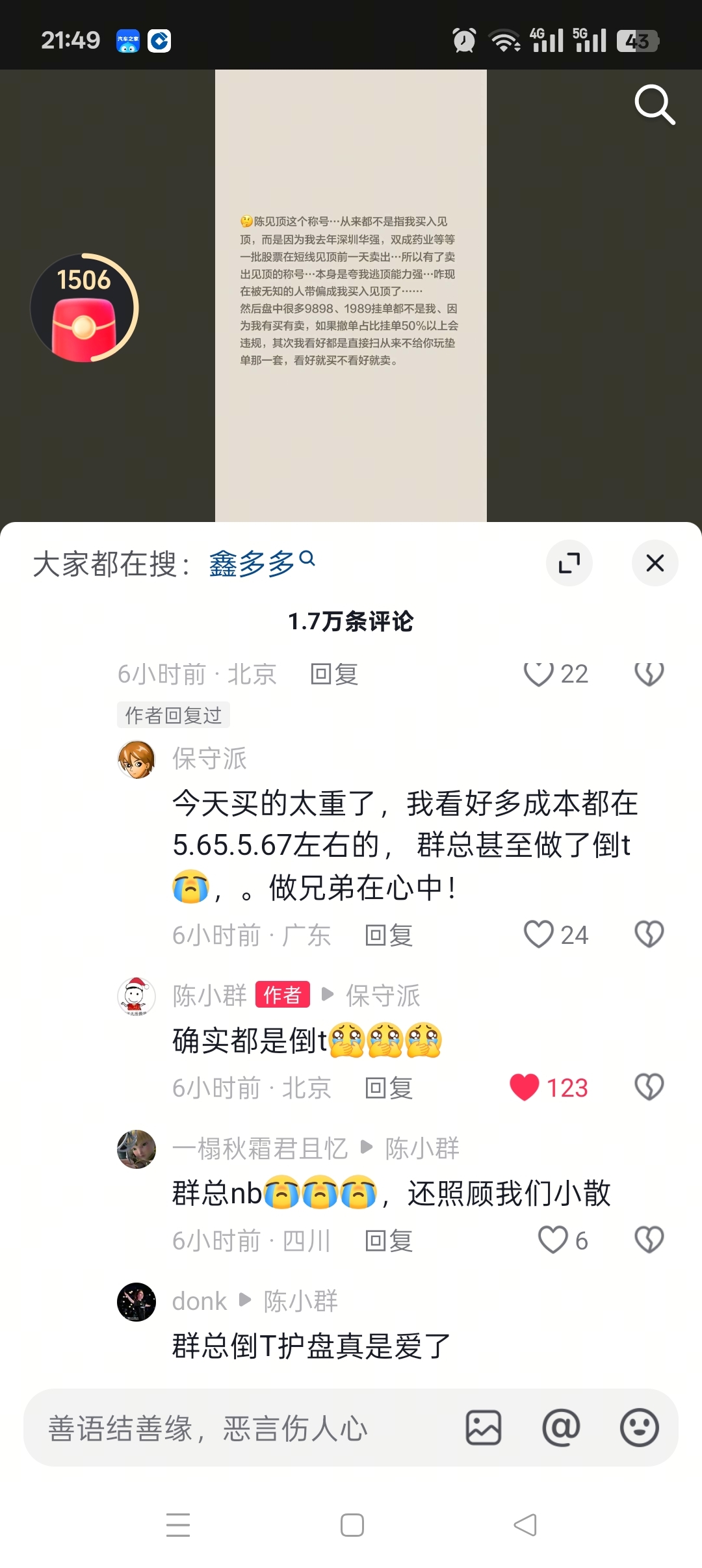 $永辉超市(SH601933)$ 群总说他做了倒t