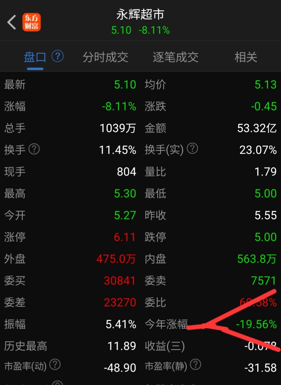 永辉超市竟然在2025年大牛市中此时此刻仍年负近-20%将继续