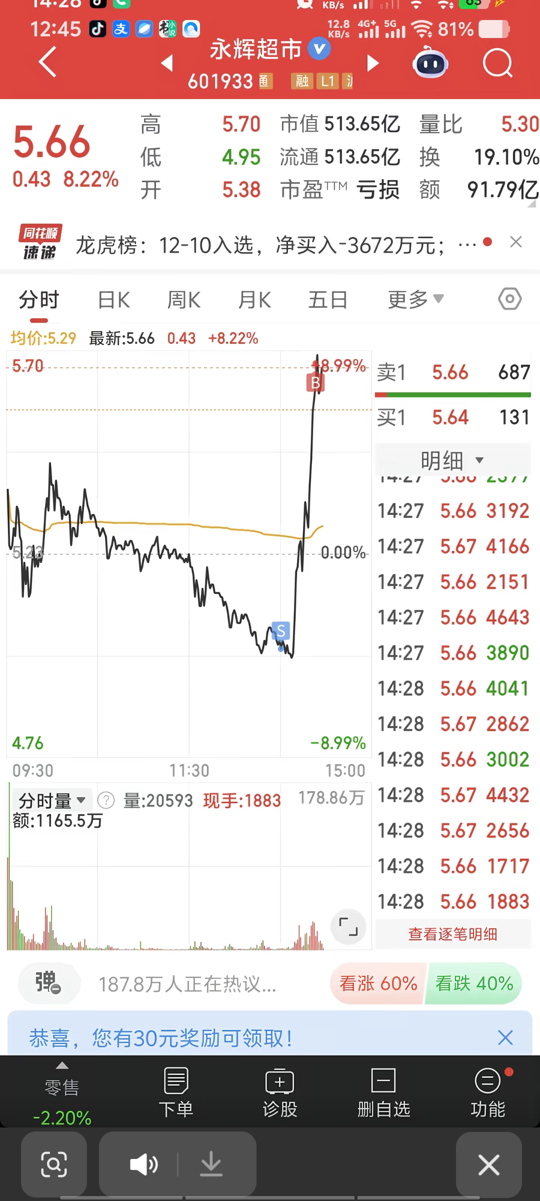 $永辉超市(SH601933)$ 割了茂业买了你,唉今天又跌停了