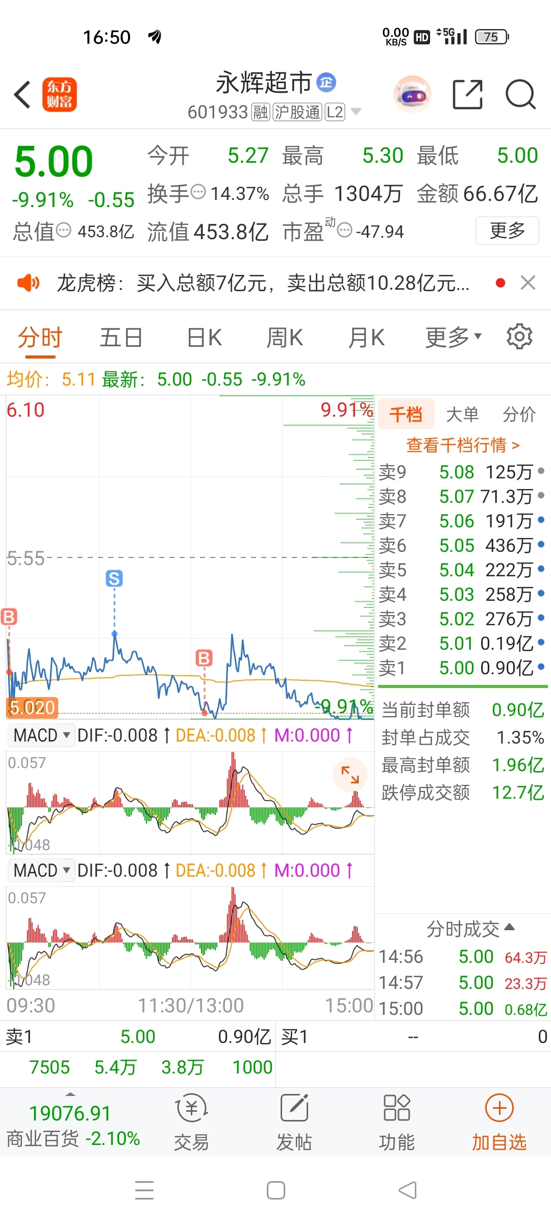 $永辉超市(SH601933)$ 66亿资金就玩3毛钱,没劲。看周一能不能地天板