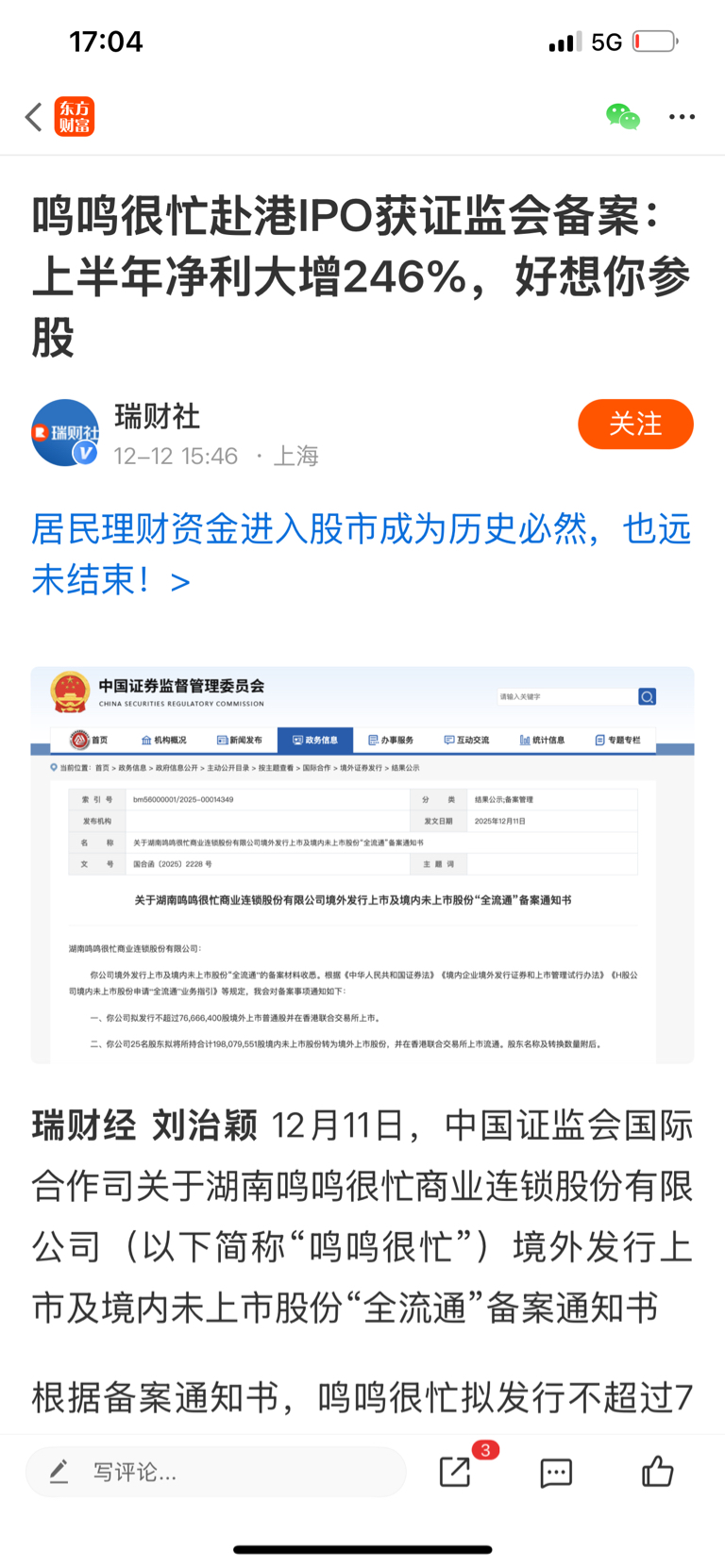 鸣鸣很忙香港上市,好想你持股1.8%
