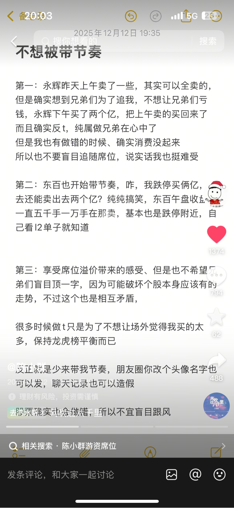 郑重声明:用户在财富号/股吧/博客等社区发表的所有信息(包括但不限于文字、视频、音频、数据及图表)仅代表个人观点,与本网站立场无关,不对您构成任何投资建议,据此操作风险自担。请勿相信代客理财、免费荐股和炒股培训等宣传内容,远离非法证券活动。请勿添加发言用户的手机号码、公众号、微博、微信及QQ等信息,谨防上当受骗!