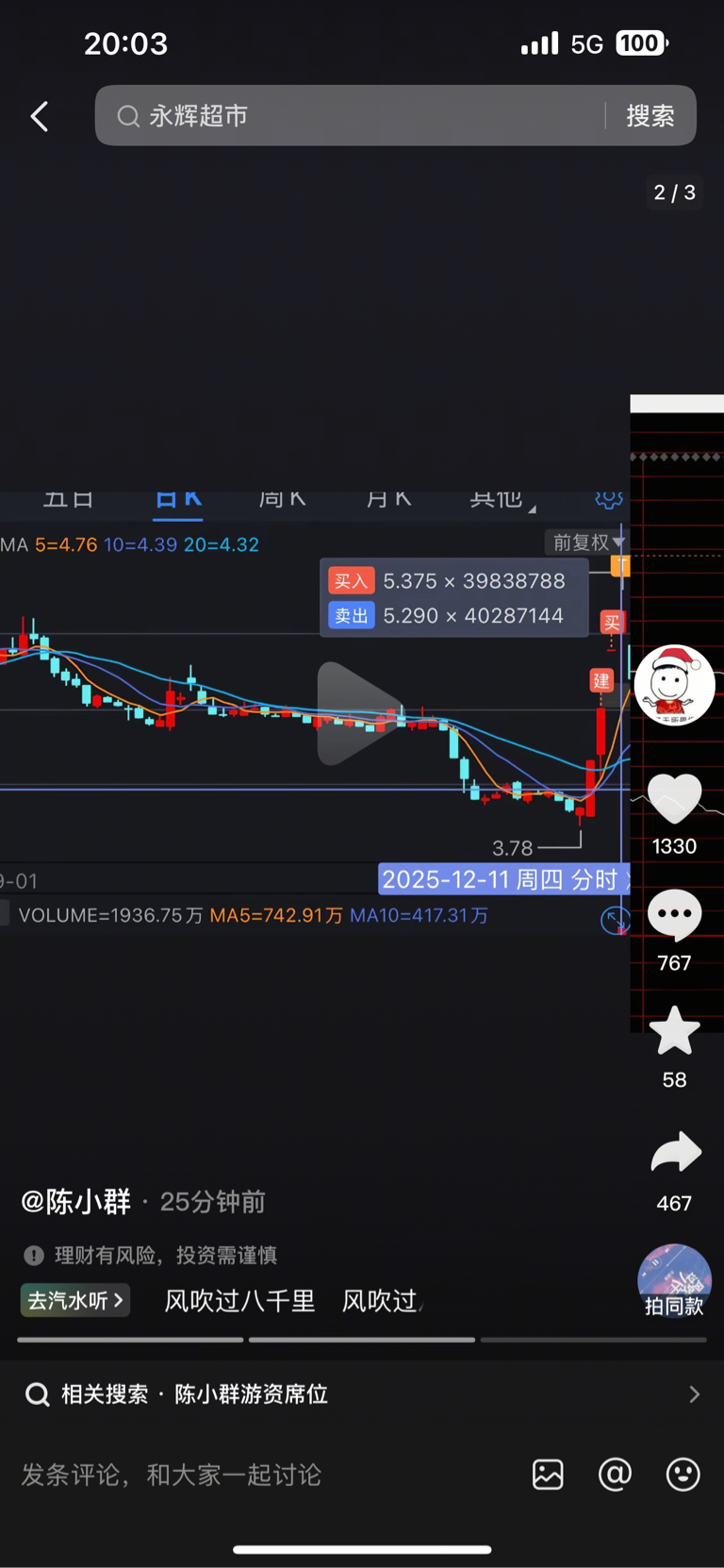 $永辉超市(SH601933)$ 陈六一没走,下周又要追高了