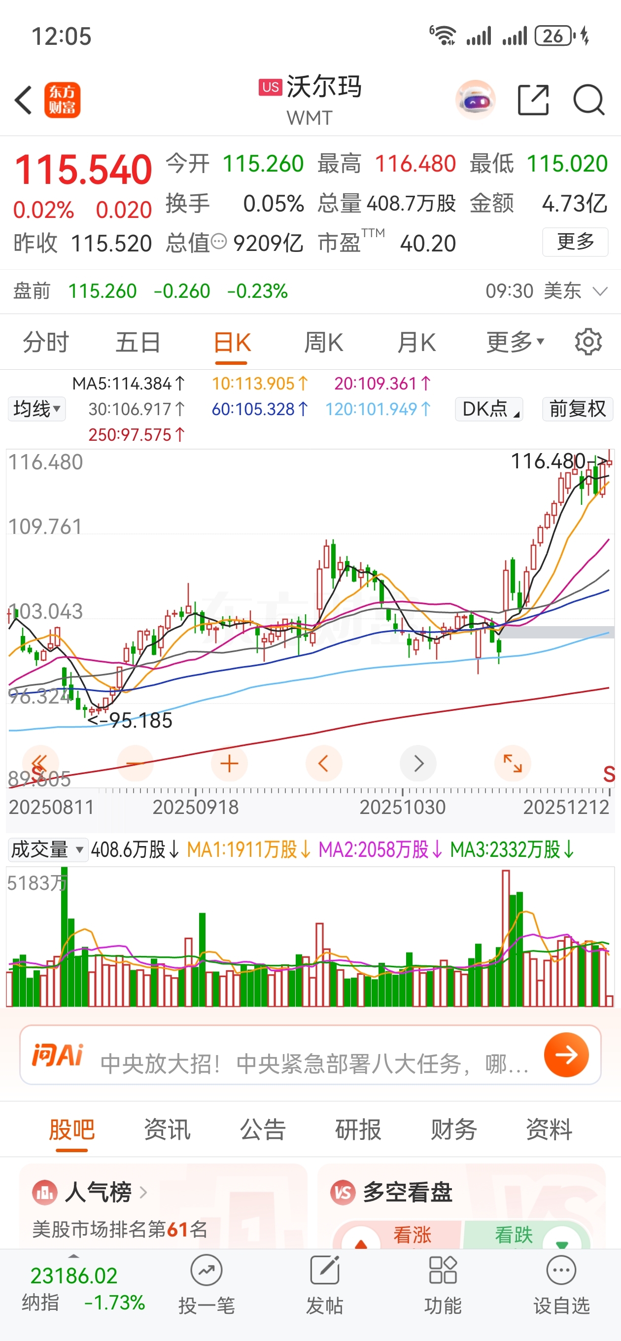 $永辉超市(SH601933)$ 美股科技股调整中,消费零售龙头代表的走势。