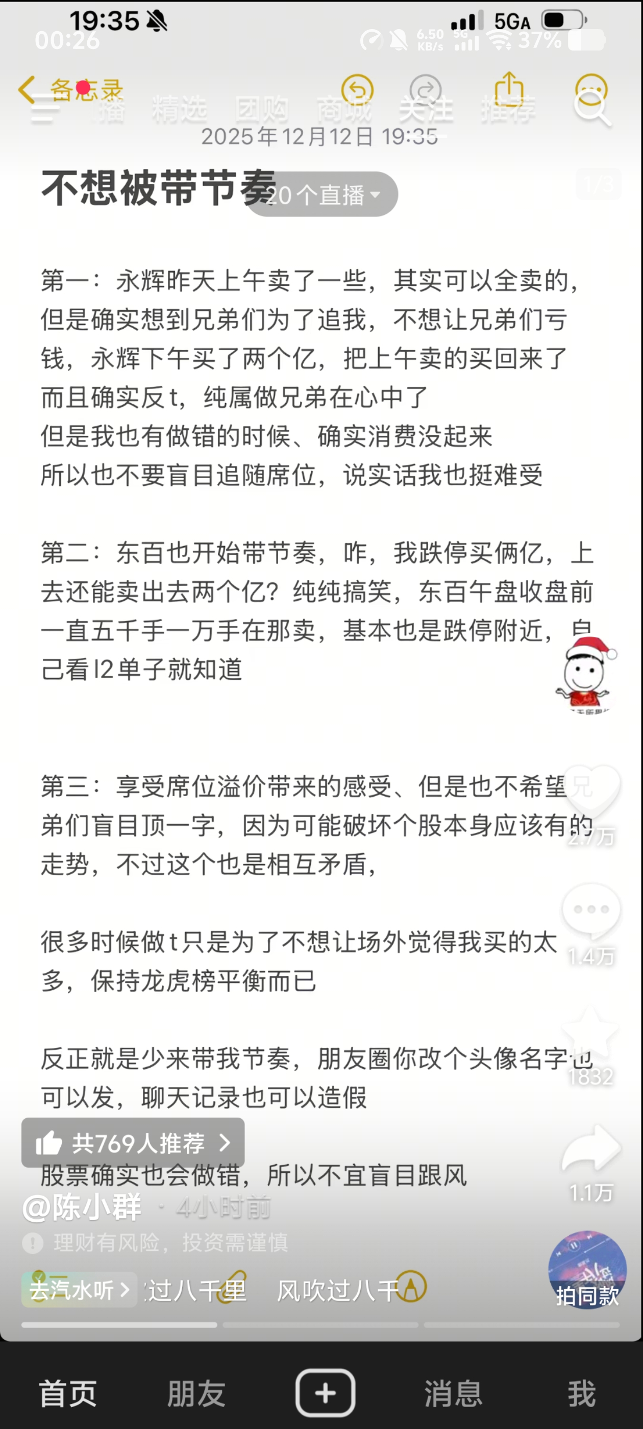 郑重声明:用户在财富号/股吧/博客等社区发表的所有信息(包括但不限于文字、视频、音频、数据及图表)仅代表个人观点,与本网站立场无关,不对您构成任何投资建议,据此操作风险自担。请勿相信代客理财、免费荐股和炒股培训等宣传内容,远离非法证券活动。请勿添加发言用户的手机号码、公众号、微博、微信及QQ等信息,谨防上当受骗!