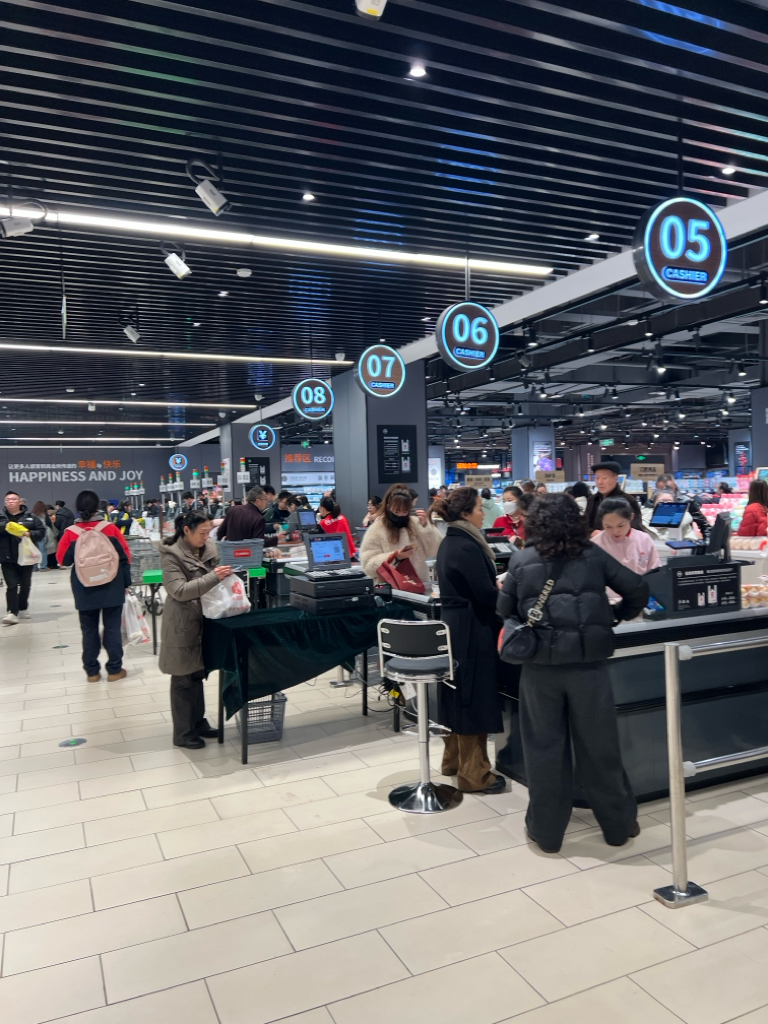 $永辉超市(SH601933)$ 收银排队,人挺多的,周一低开加点仓位。