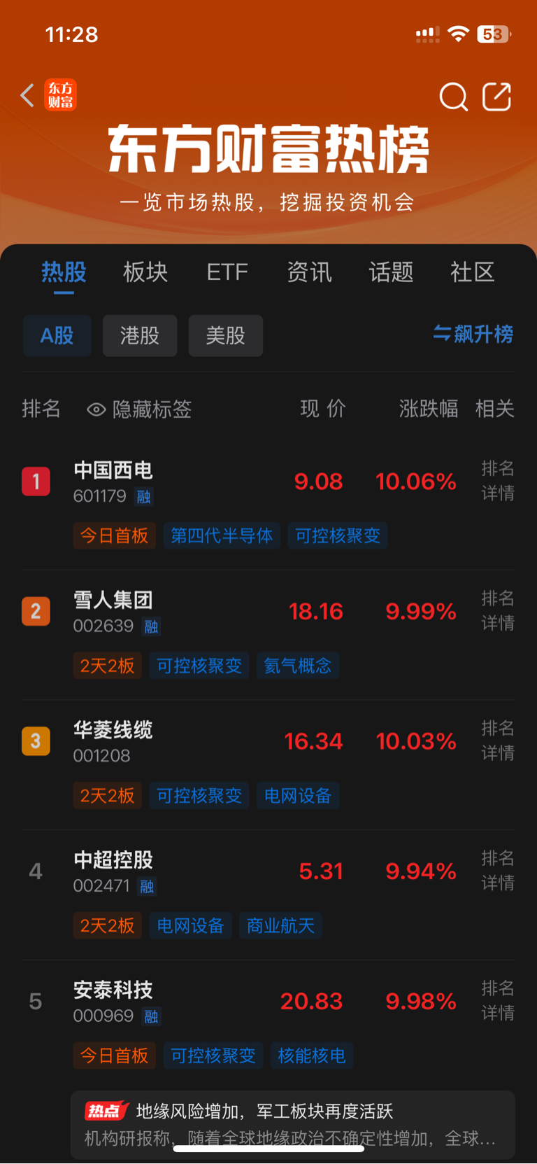 $永辉超市(SH601933)$ 别扯了,最新人气榜都是电力股!下周炒作方向很明确了!就是干!