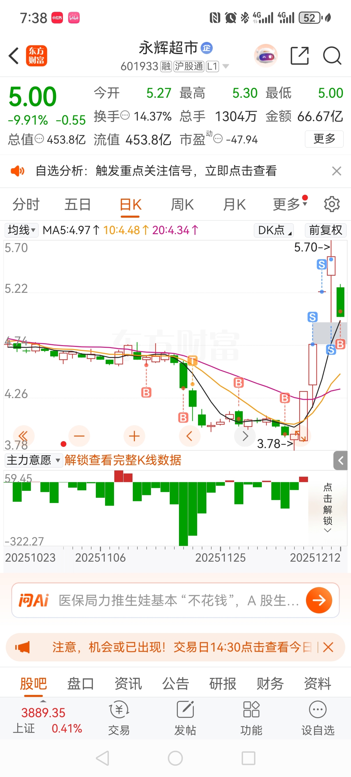 $永辉超市(SH601933)$ 果真是利好么?你们别骗我,是爽了还是哭了,我周一看看