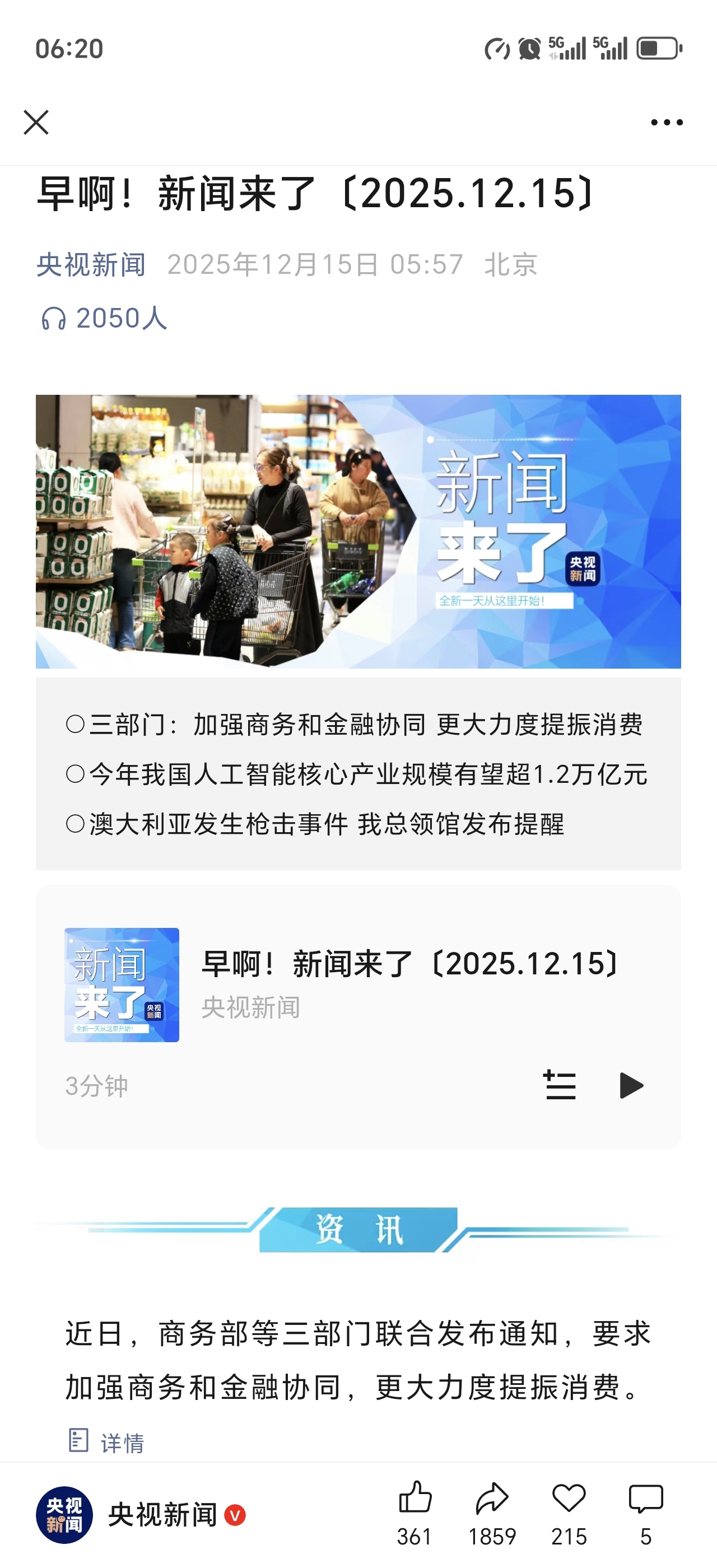 今天央视新闻封面是商超,第一条是三部门大力提振消费,希望今天不要跌了