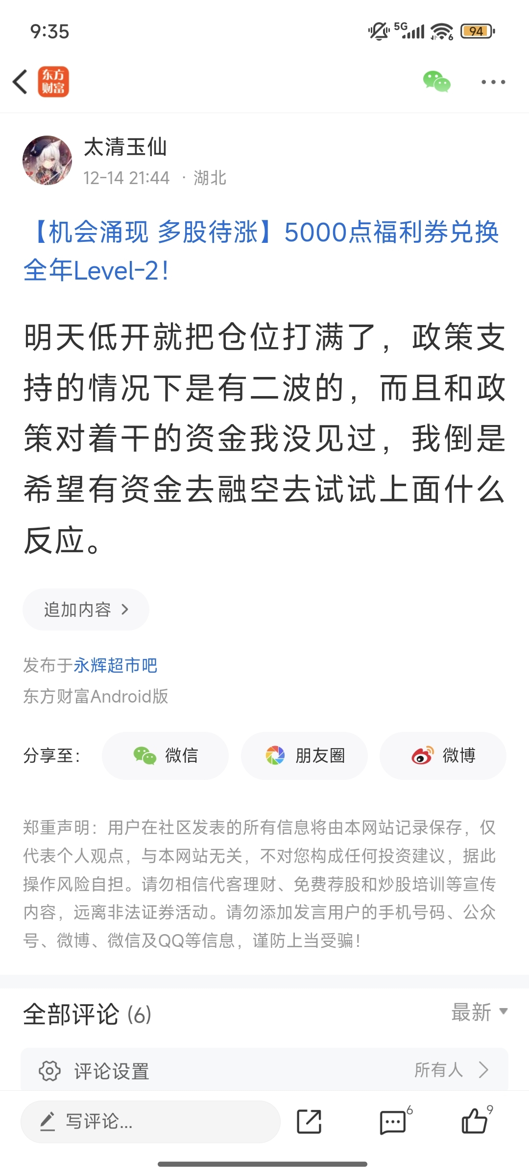 温馨提示: 1.根据《证券法》规定,禁止编造、传播虚假信息或者误导性信息,扰乱证券市场;2.用户在本社区发表的所有资料、言论等仅代表个人观点,与本网站立场无关,不对您构成任何投资建议。用户应基于自己的独立判断,自行决定证券投资并承担相应风险。《东方财富社区管理规定》