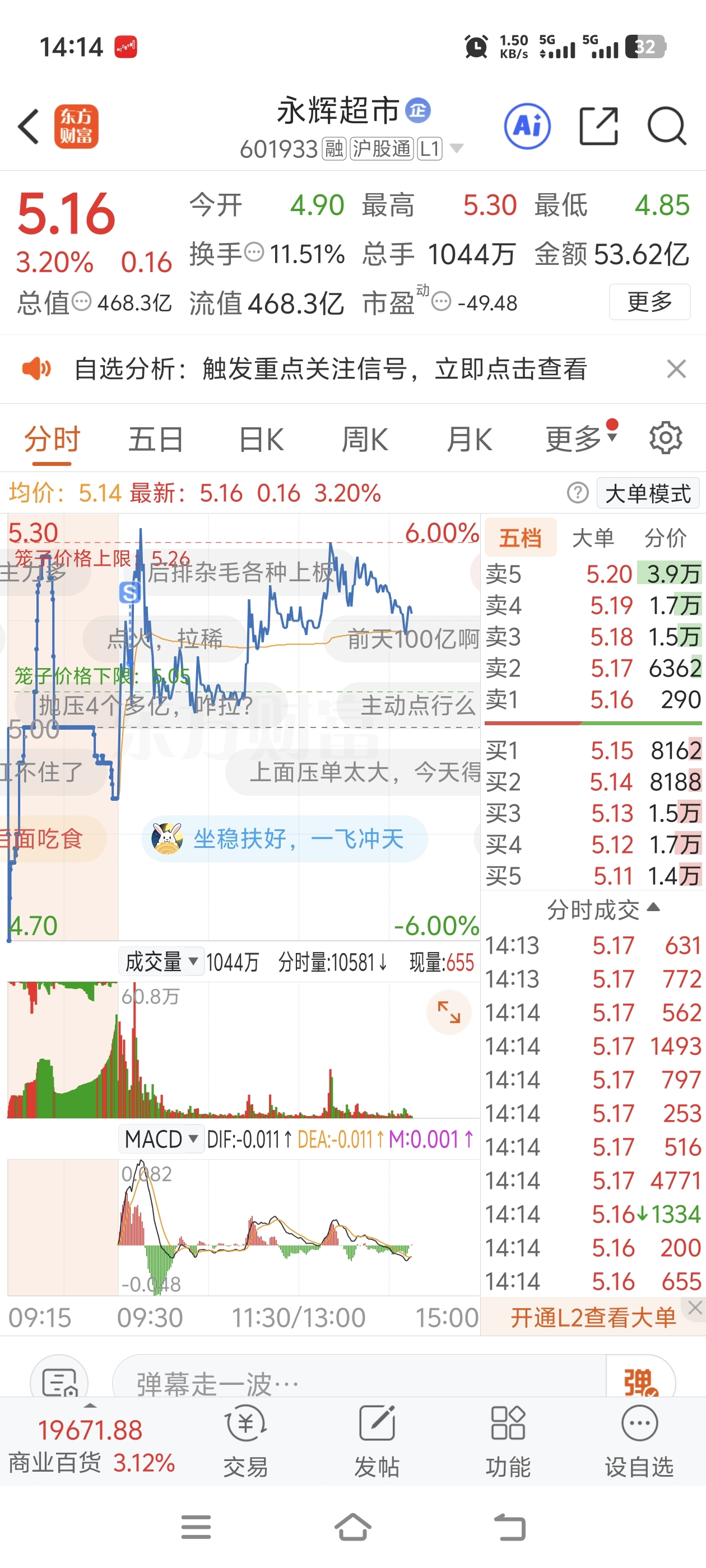 $永辉超市(SH601933)$ 卖飞了。留下的发财