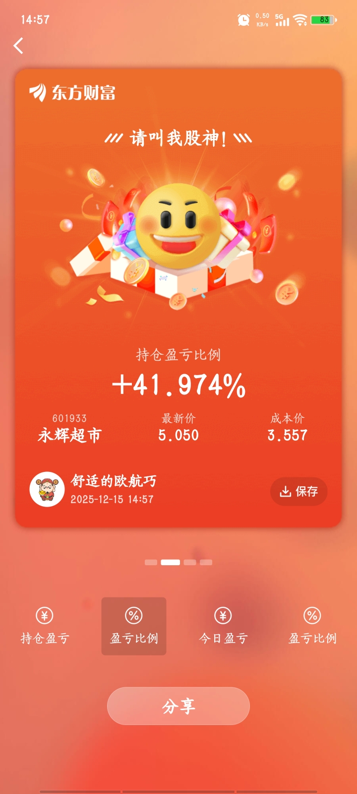 $永辉超市(SH601933)$ 本想低调行事,看到股吧。一群韭菜不清醒。炒股全靠最嗨,就不得掏出我的十八米大刀。尊重市场,多头做多就跟随,空头优势也跟随。不是嘴嗨,至于什么利好什么不利好,盘中只有定数。只有走势才能看清本质。而不是猜,嘴嗨,喷