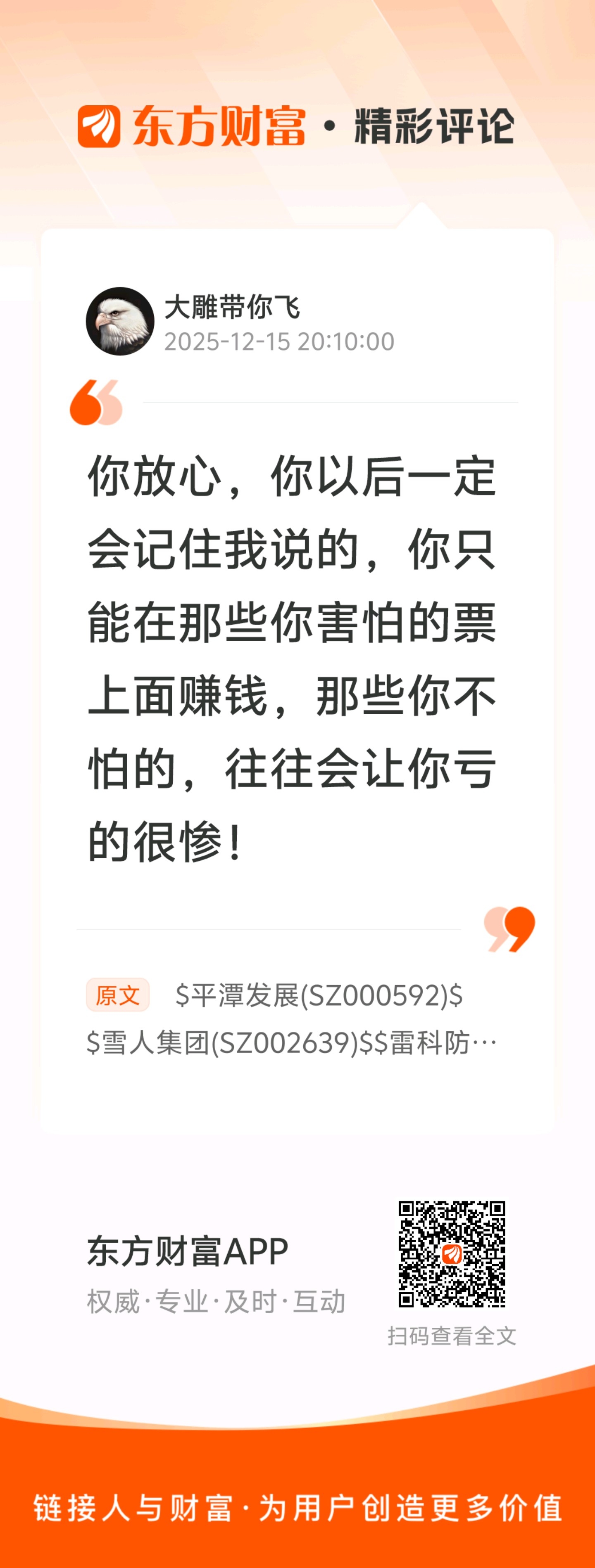 $永辉超市(SH601933)$ $安妮股份(SZ002235)$ $实达集团(SH600734)$ 有粉丝问平潭发展这位置怕不怕,这样说吧,10块买的人怕不怕?12买的怕不怕?14买的怕不怕?但是请永远记住,怕才能赚到钱,这就是反人性