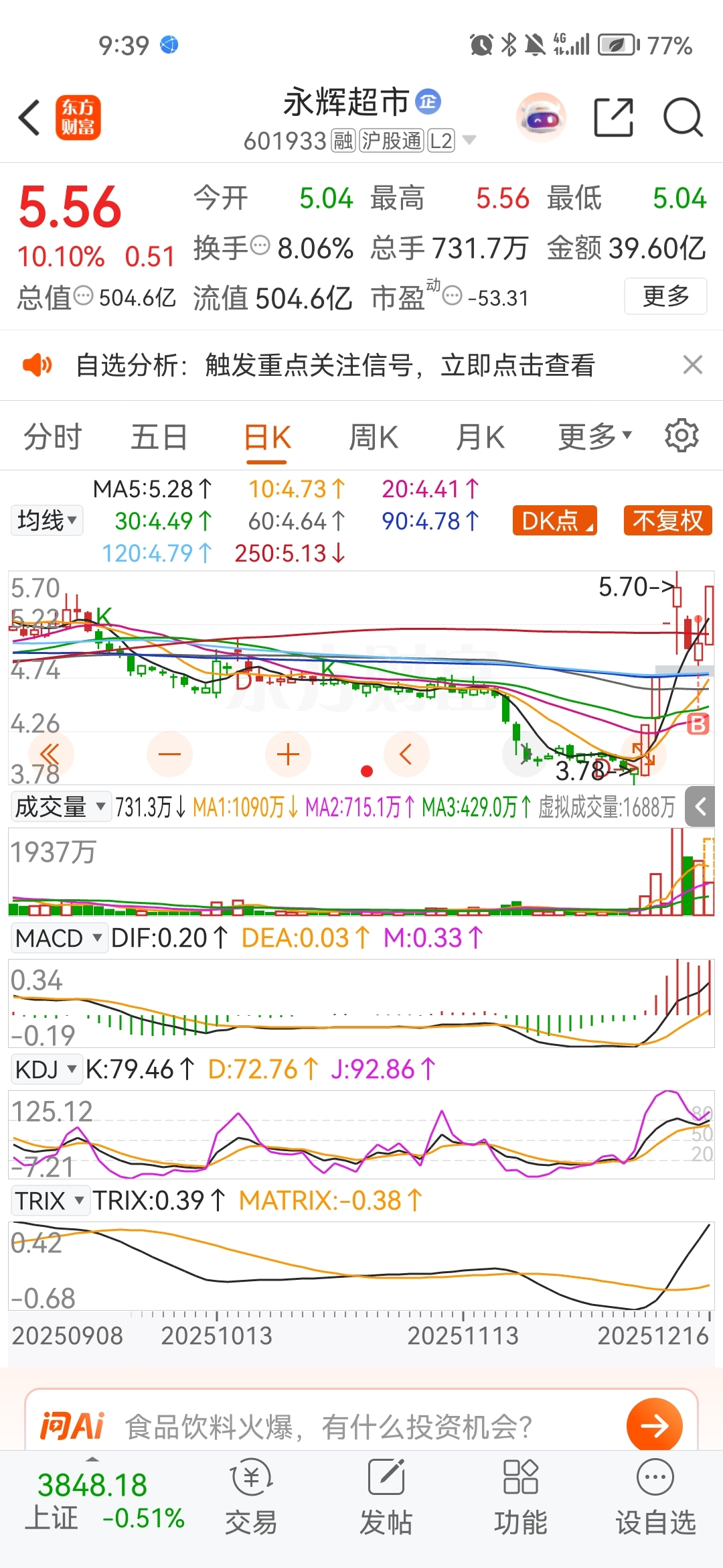 $永辉超市(SH601933)$ 大消费总龙头,核心标的,看月线涨幅不大,猛干就是!
