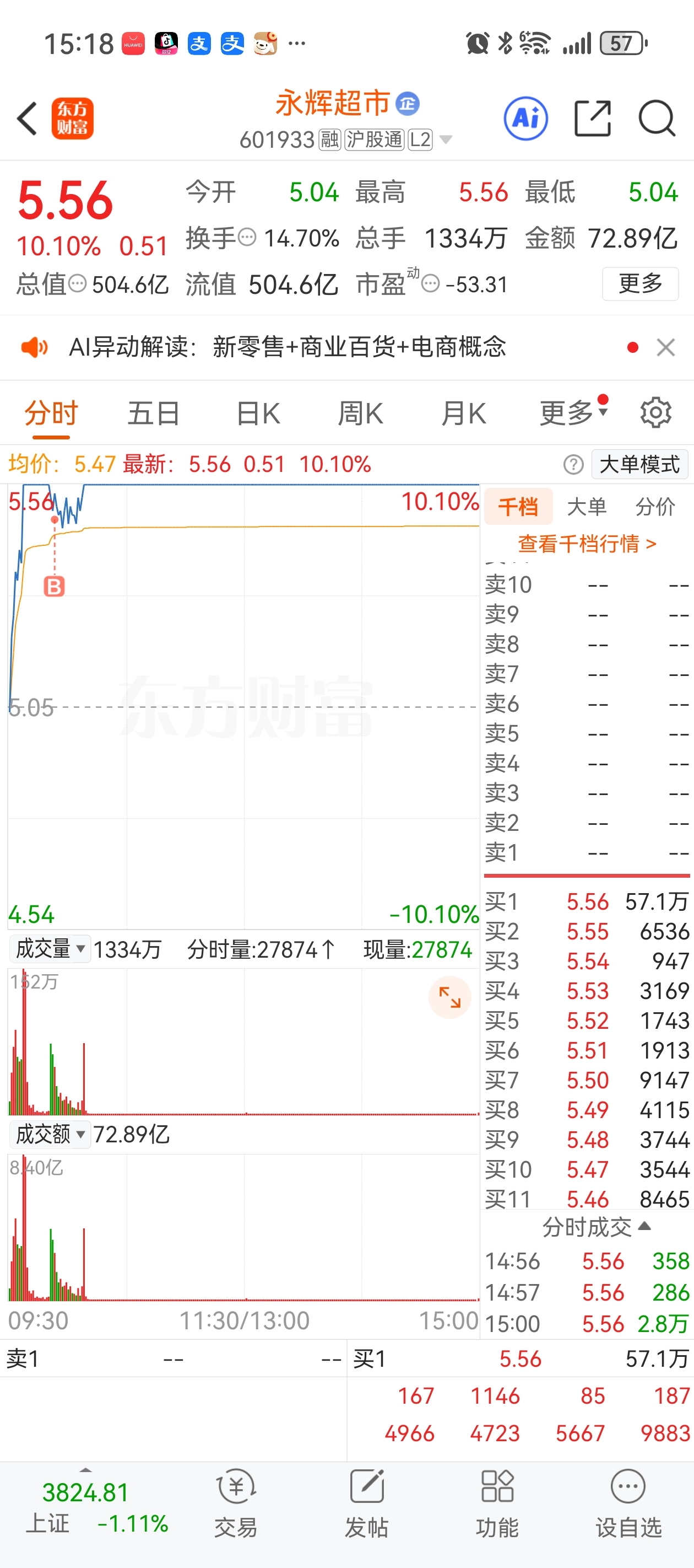 $永辉超市(SH601933)$ 买入今天最强的消费。