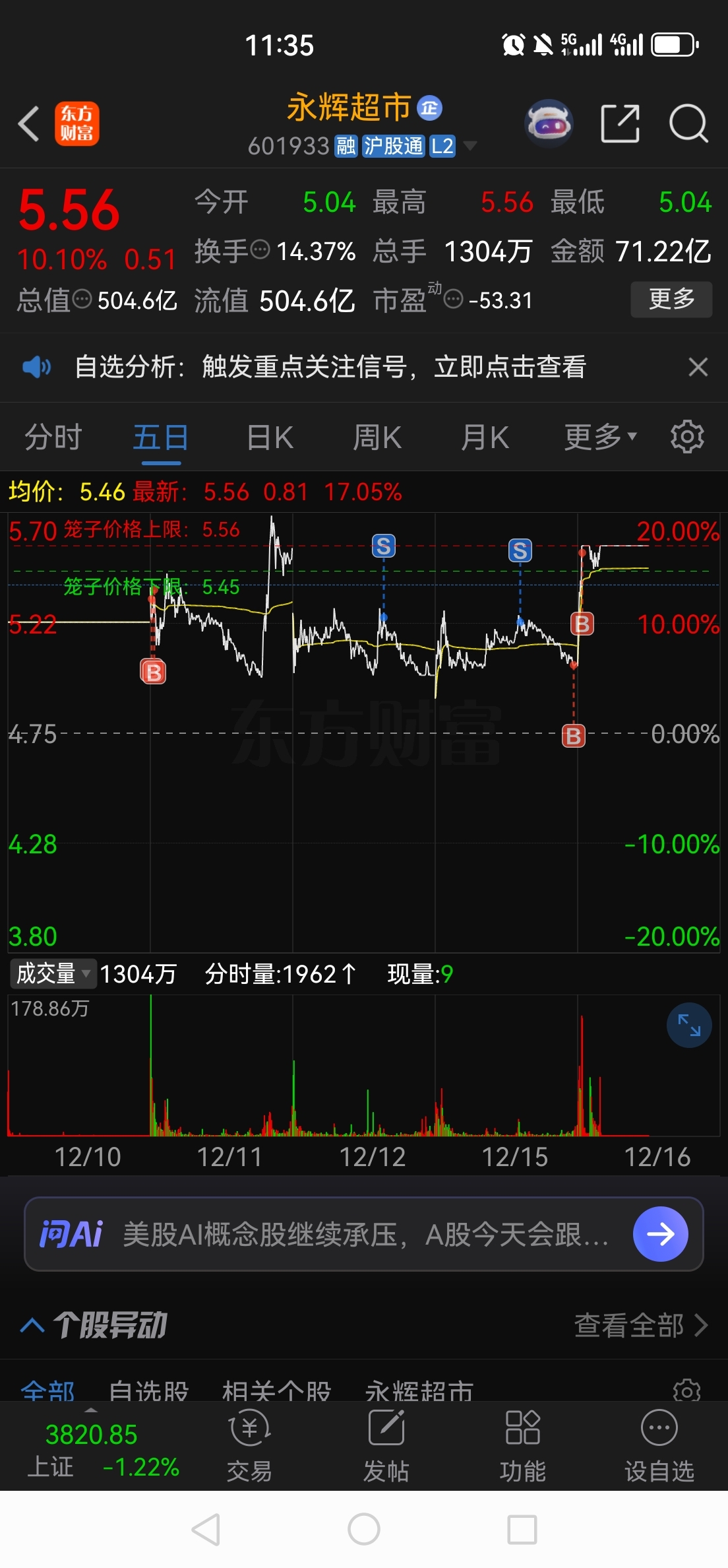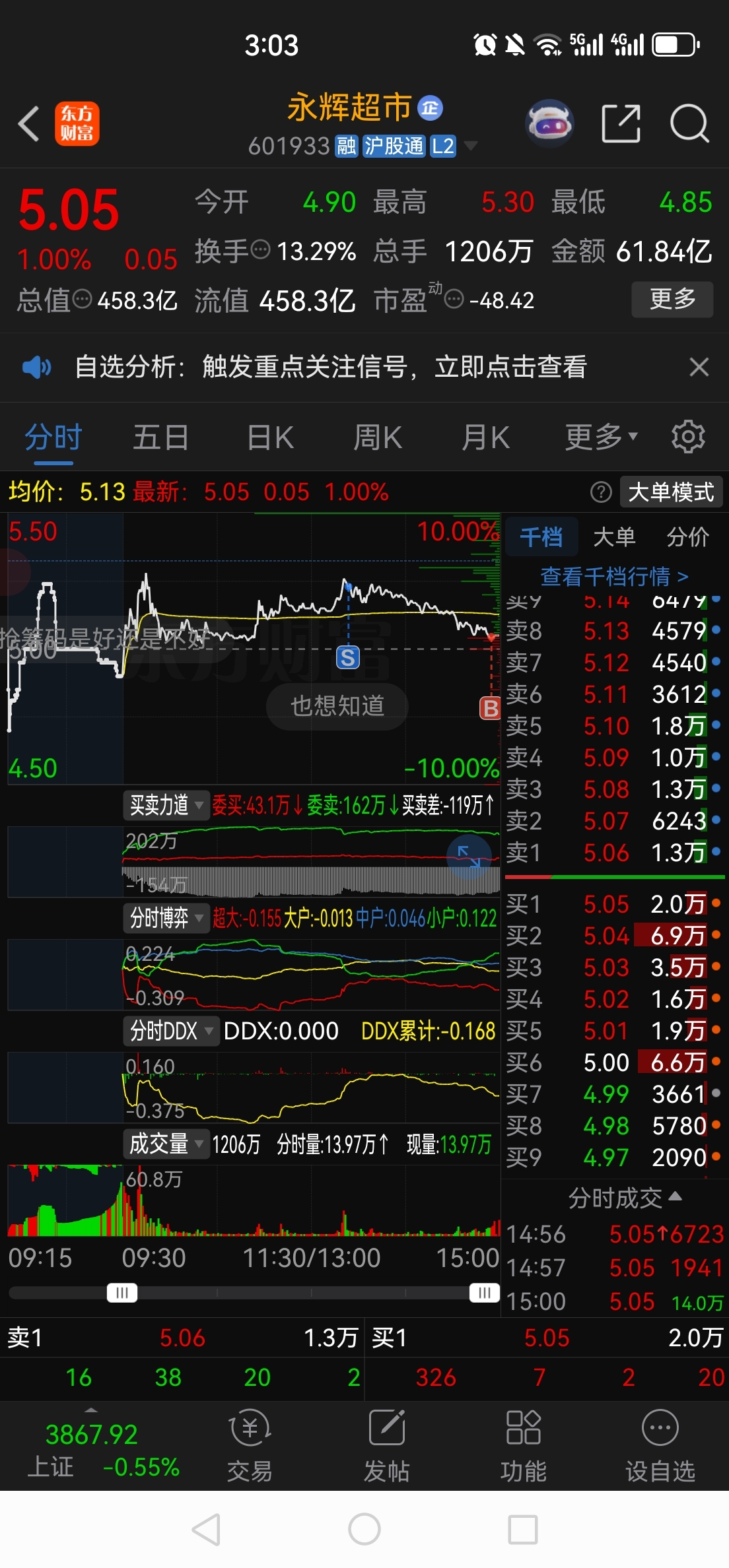 $永辉超市(SH601933)$ 永辉超市,反复做了2遍T,连续两天冲不破5.30,今天早晨冲破,势不可挡,消费总龙头。仅次于商业航天的板块,锁仓了