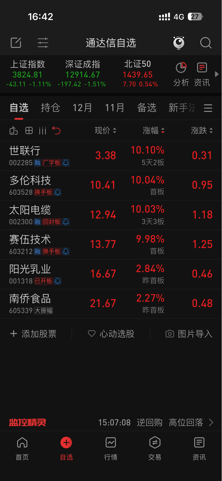 $永辉超市(SH601933)$ 两天亏损8个点,明天继续竞价走,观察这4个,只要亏损15点以内都不是事,交易没有神,强如陈小群也会亏损,跟昨天一样,两个标的上面砸的太狠加上早盘大盘暴跌,混沌期只能这样了,不断的试错,等到走出混沌期的龙头,例如海欣,平潭