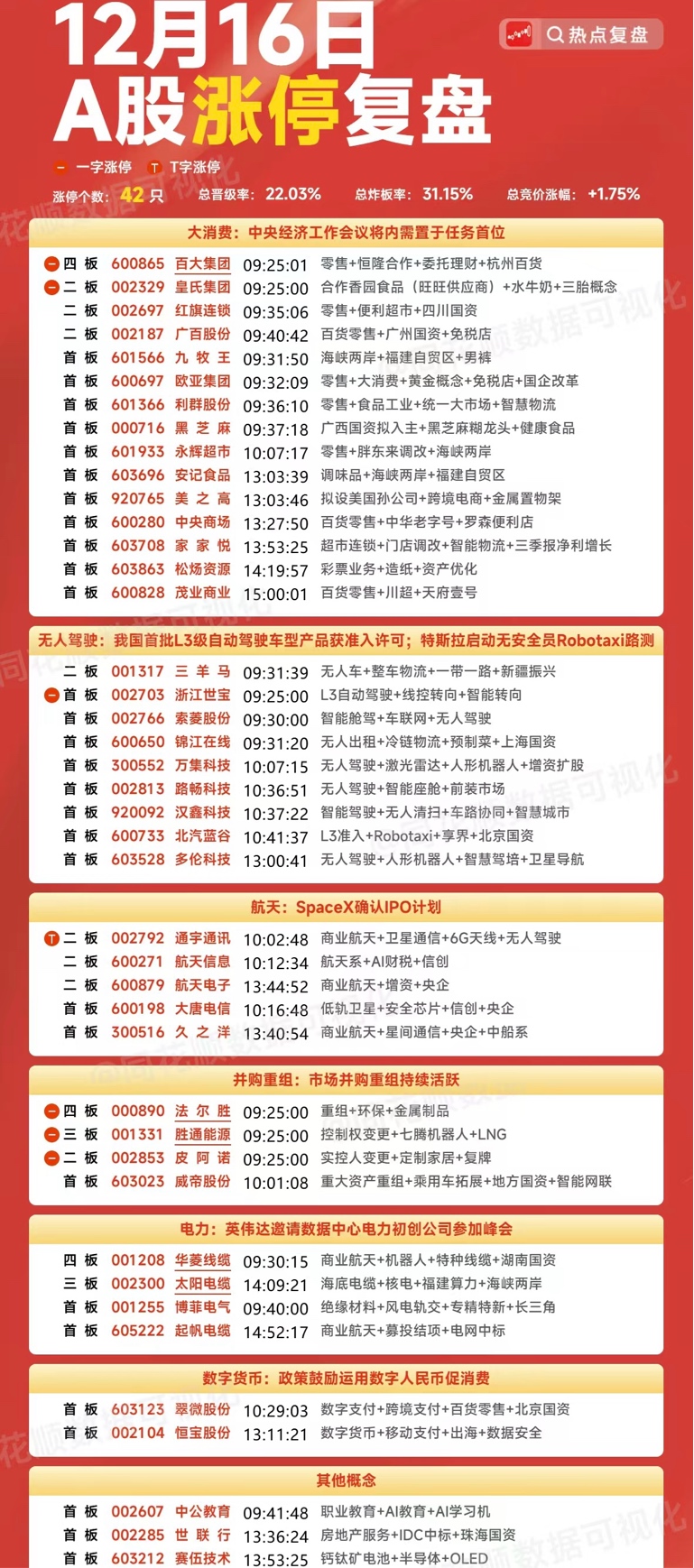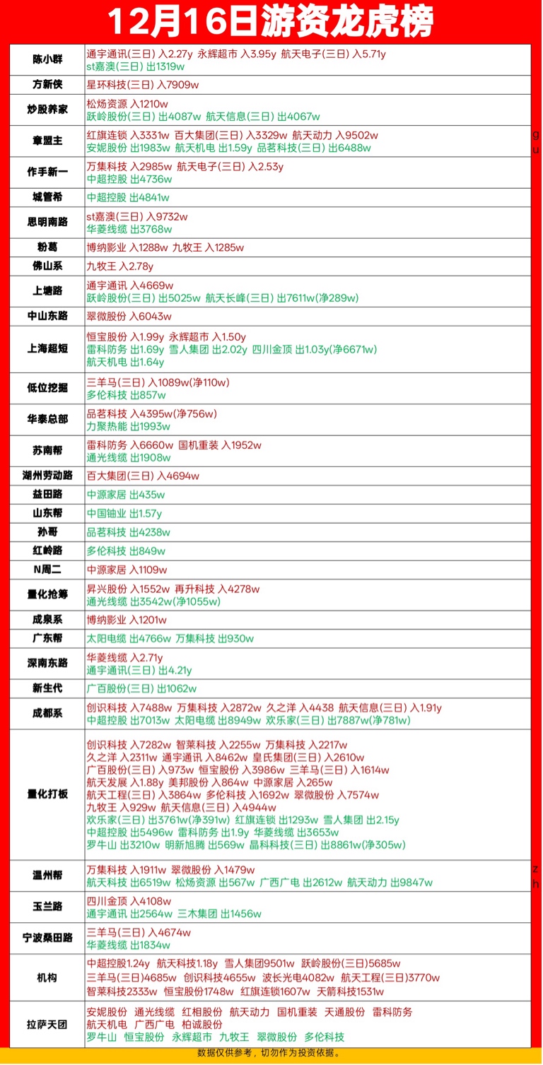 12月16日各大板块涨停个股&游资龙虎榜复盘免责声明:本文基于公开数据,仅供参考