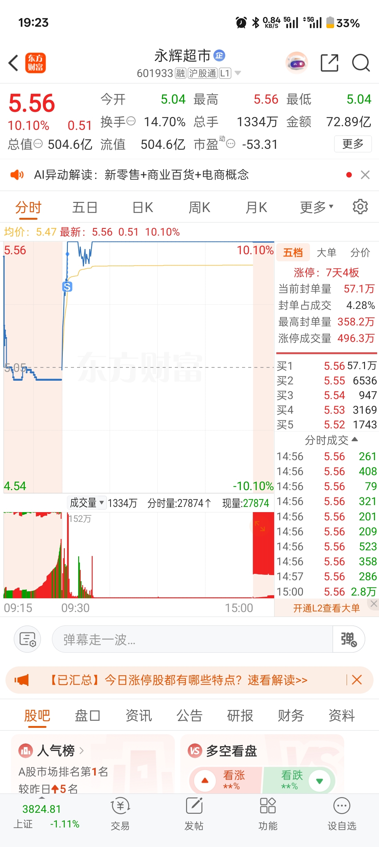 $永辉超市(SH601933)$ 因为没时间看盘,怕会冲高回落,就挂赚9个点卖,现在看感觉少赚了