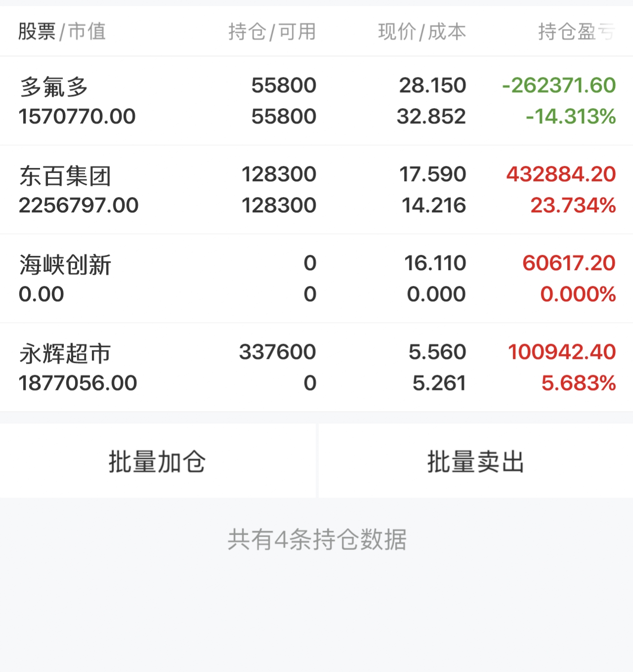 $永辉超市(SH601933)$ 别管这一刻跌多少、跌多深,还是反复震荡的节奏,趋势是重点,以震荡上行趋势为主,短期市场X出恐慌盘也完成二次探底,这对底部震荡来说不是坏事!还是那个观点,在这种市场,敢大阳买便可能被大阴埋;敢大阴吸也可能享大阳光!