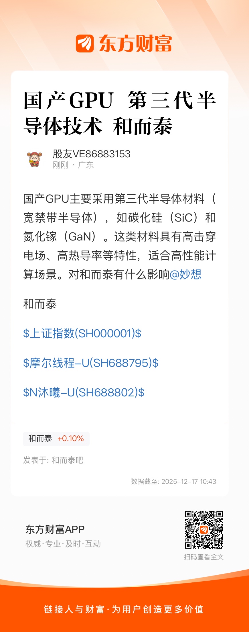 国产GPU主要采用第三代半导体材料(宽禁带半导体),如碳化硅(SiC)和氮化镓(GaN)。这类材料具有高击穿电场、高热导率等特性,适合高性能计算场景。对和而泰有什么影响@妙想