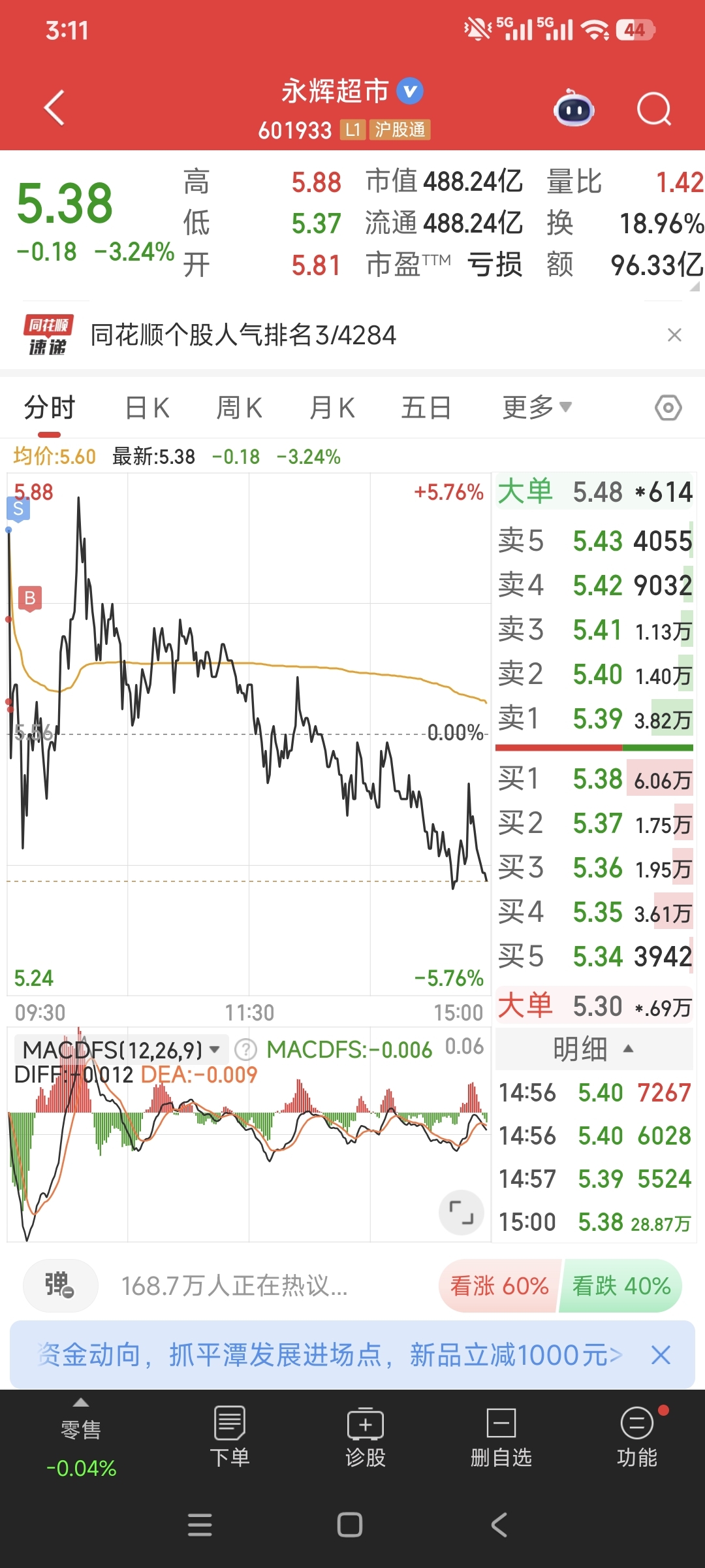$永辉超市(SH601933)$ 。。。。早盘看好商业百货板块,提前做t锁死仓位了,没想到走成这样呢,这个板块过于抽象了