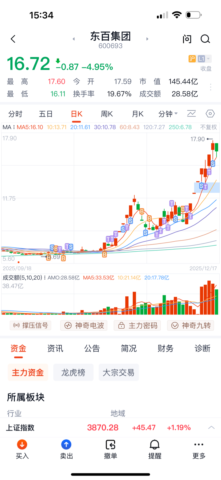 $永辉超市(SH601933)$ $东百集团(SH600693)$ 今天没有赚钱,失误比较严重,永辉给了机会没有高抛,不过问题不大,卖了3分之一明天在低吸,
