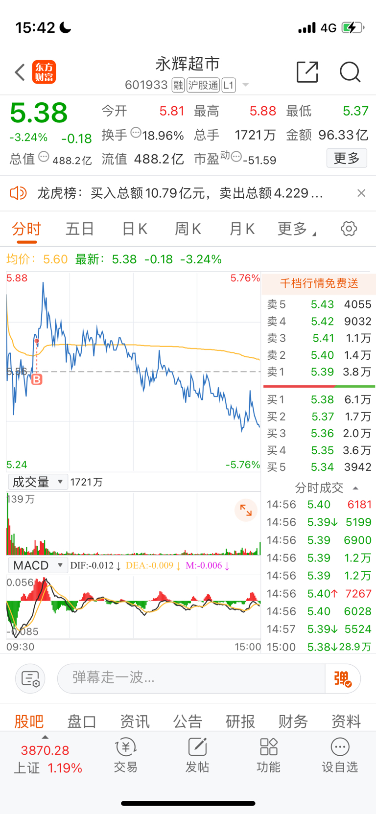 $永辉超市(SH601933)$ 已经做好明天再吃-10.04%大面的准备了