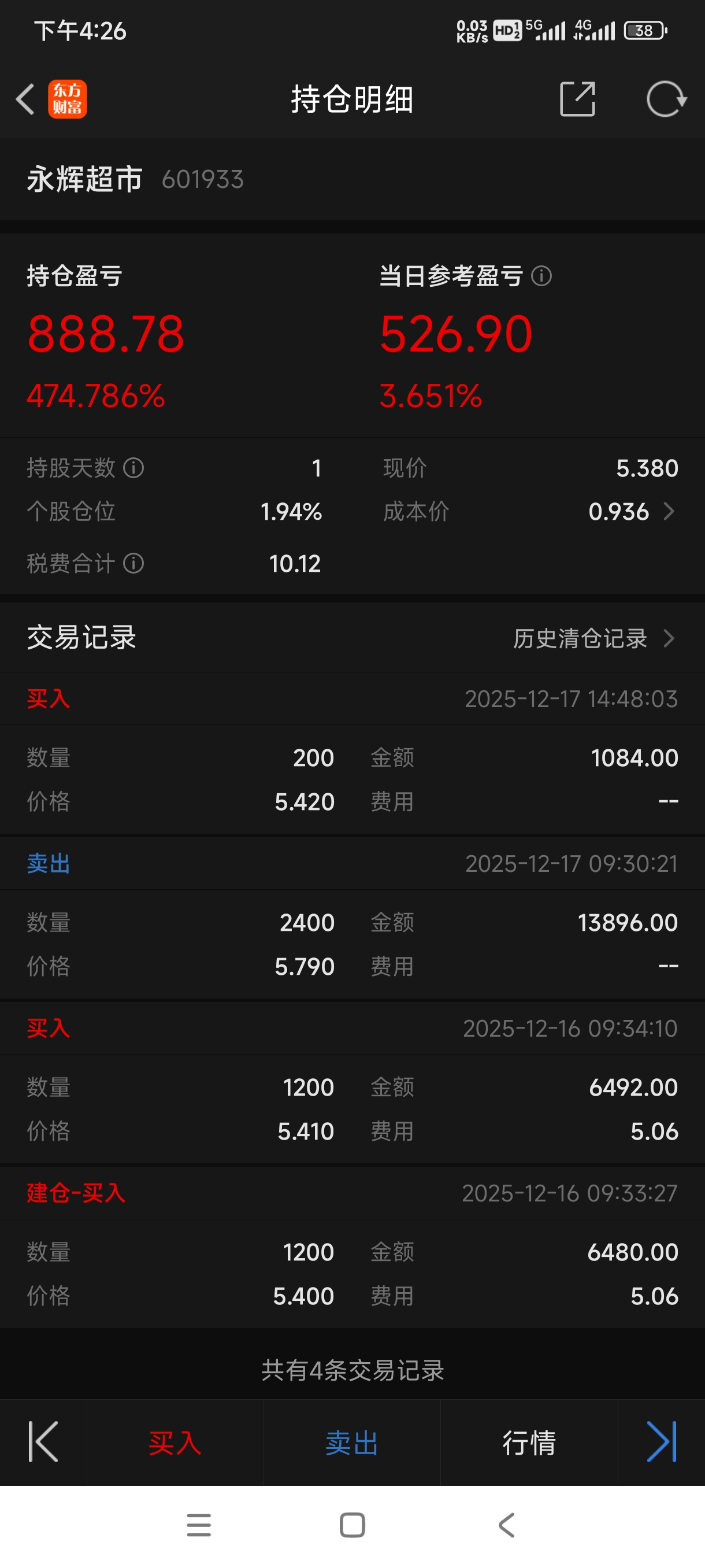 $永辉超市(SH601933)$ 尾盘接两手,明天看情况