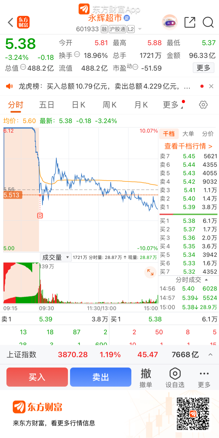 $永辉超市(SH601933)$ 这也能让我亏,我是无语了,高位接到到的差不多7-8个点亏损
