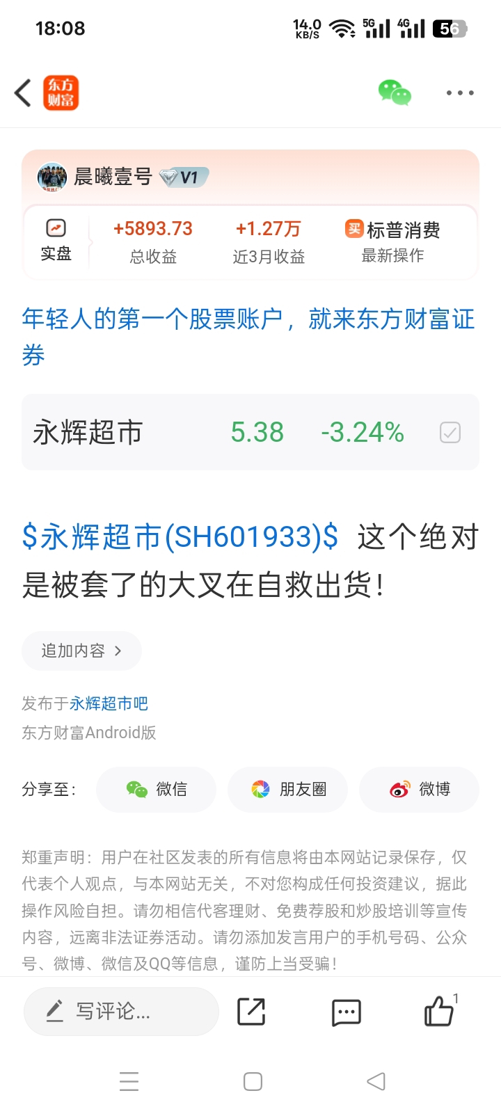 温馨提示: 1.根据《证券法》规定,禁止编造、传播虚假信息或者误导性信息,扰乱证券市场;2.用户在本社区发表的所有资料、言论等仅代表个人观点,与本网站立场无关,不对您构成任何投资建议。用户应基于自己的独立判断,自行决定证券投资并承担相应风险。《东方财富社区管理规定》