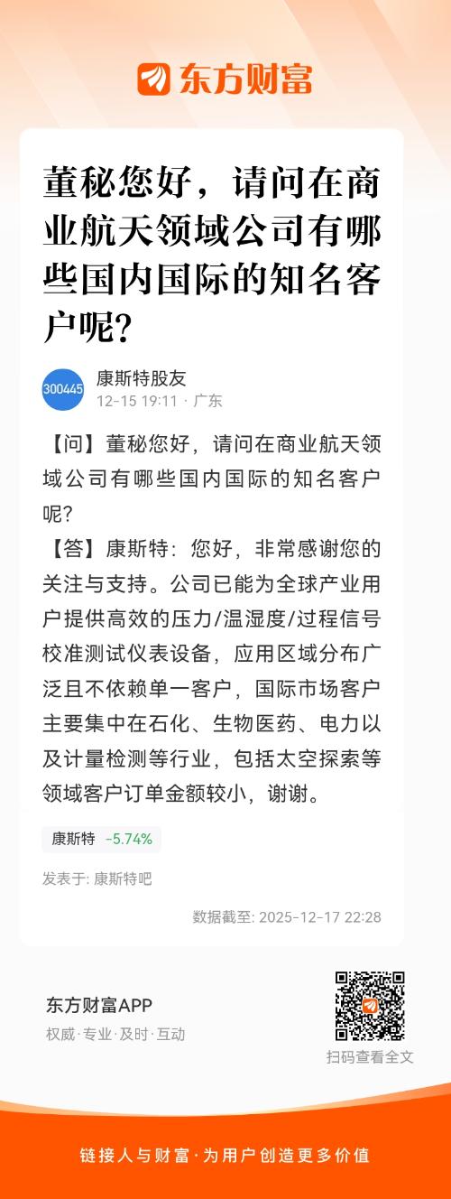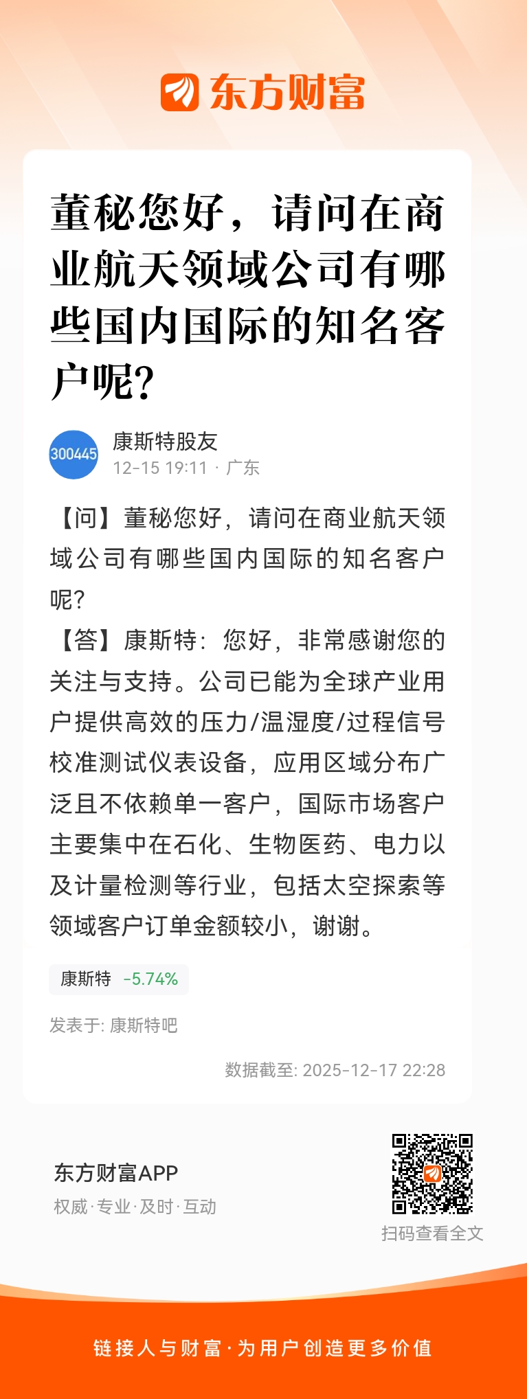董秘您好,请问在商业航天领域公司有哪些国内国际的知名客户呢?