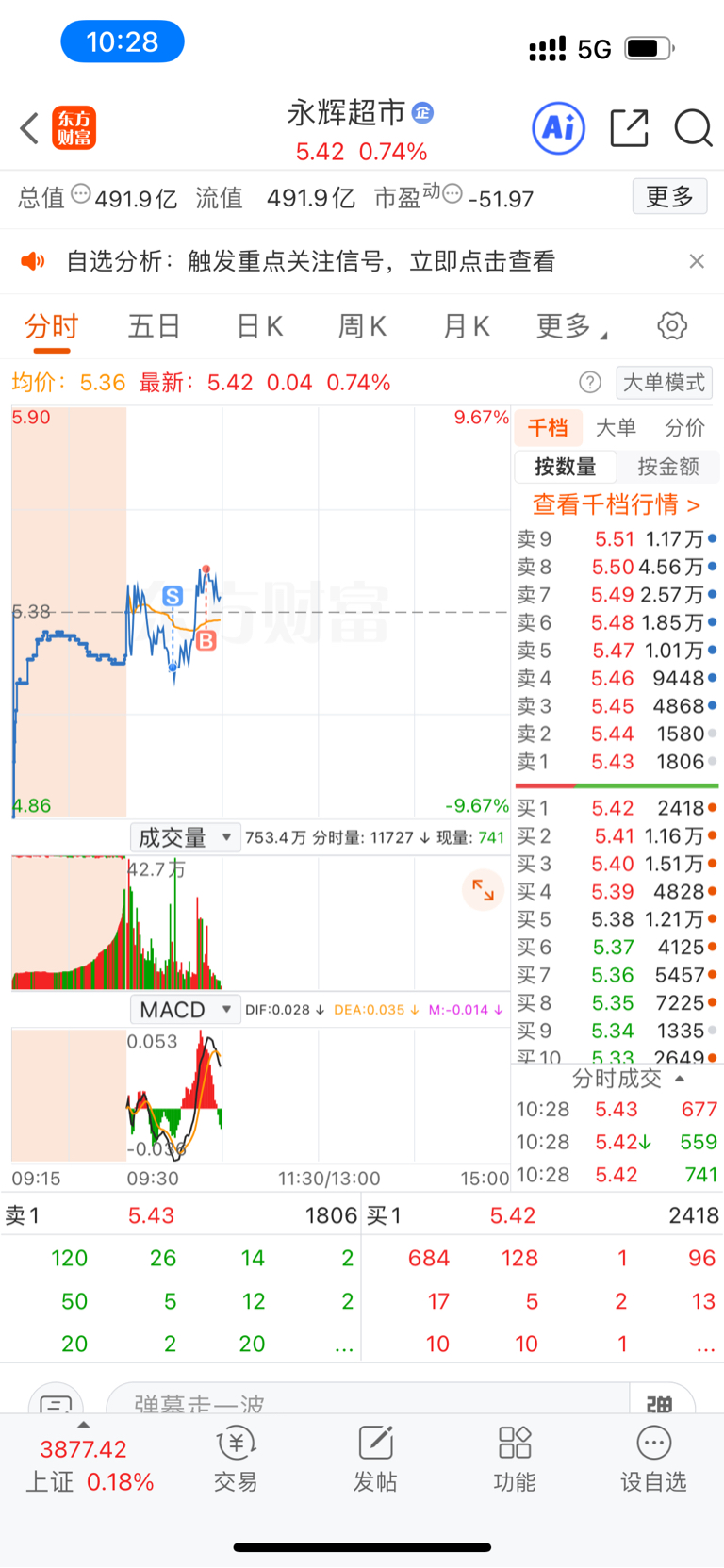 $永辉超市(SH601933)$ 一进来就是砸盘一割肉就猛拉,气死我了专门买一手来压盘