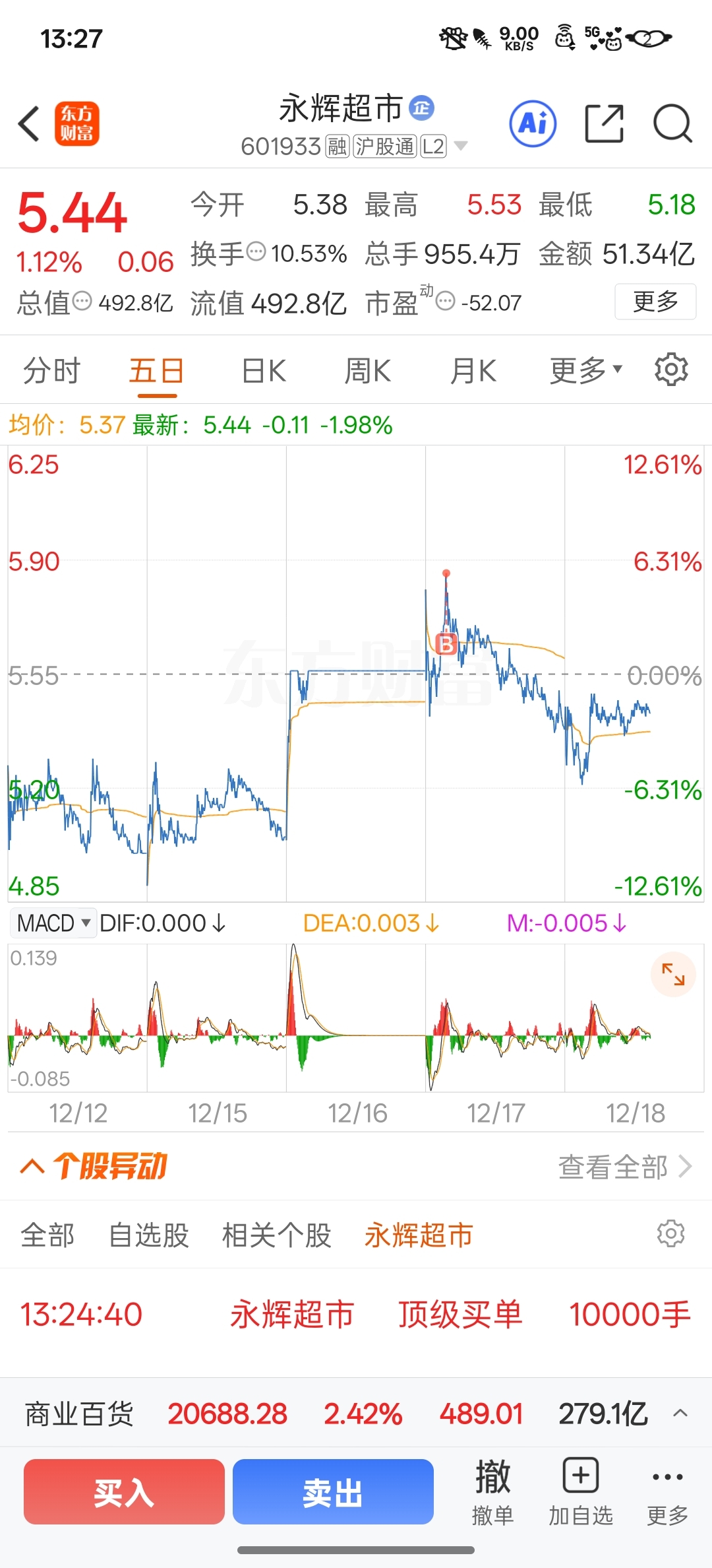 $永辉超市(SH601933)$ 这还有希望回本吗
