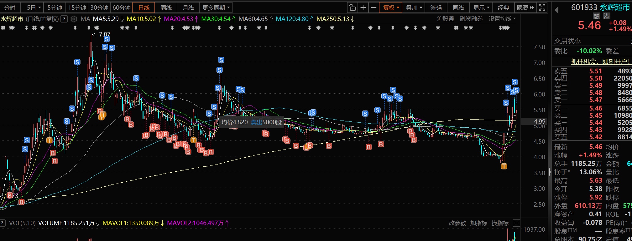 永辉今天清仓了,本想剩点底仓拿到定增落地的,就是这几天情绪太热了,中线想突破6块