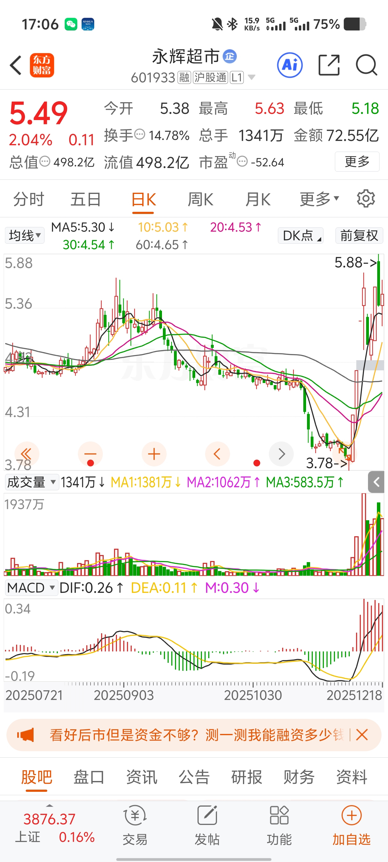 $永辉超市(SH601933)$ 按照小群之前参与的万向钱潮的走势,应该是先跌下来再反弹下,再跌