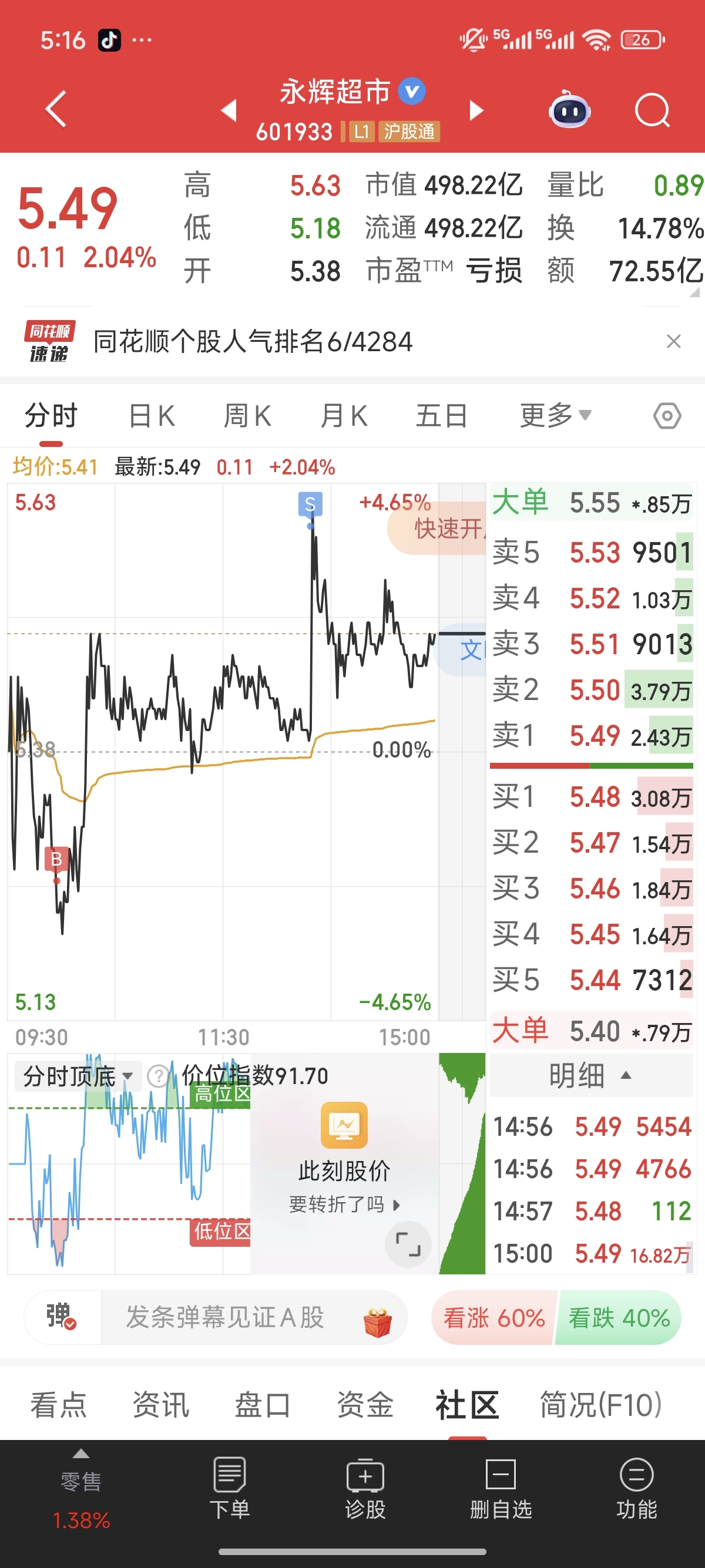 $永辉超市(SH601933)$ 被洗出去半仓,明天还有机会进吗?