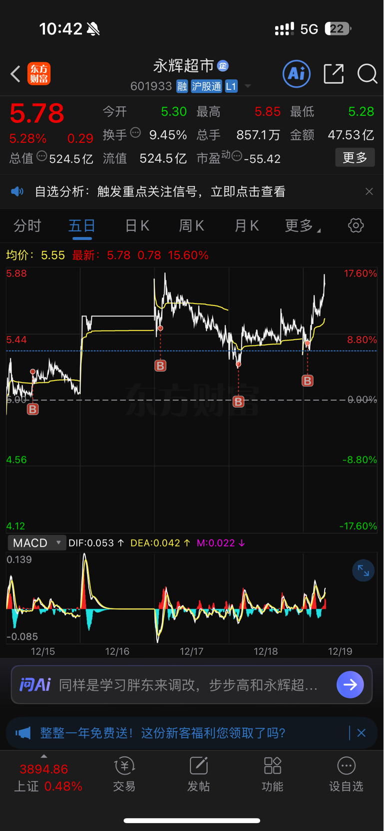 $永辉超市(SH601933)$ 嘻嘻继续买入