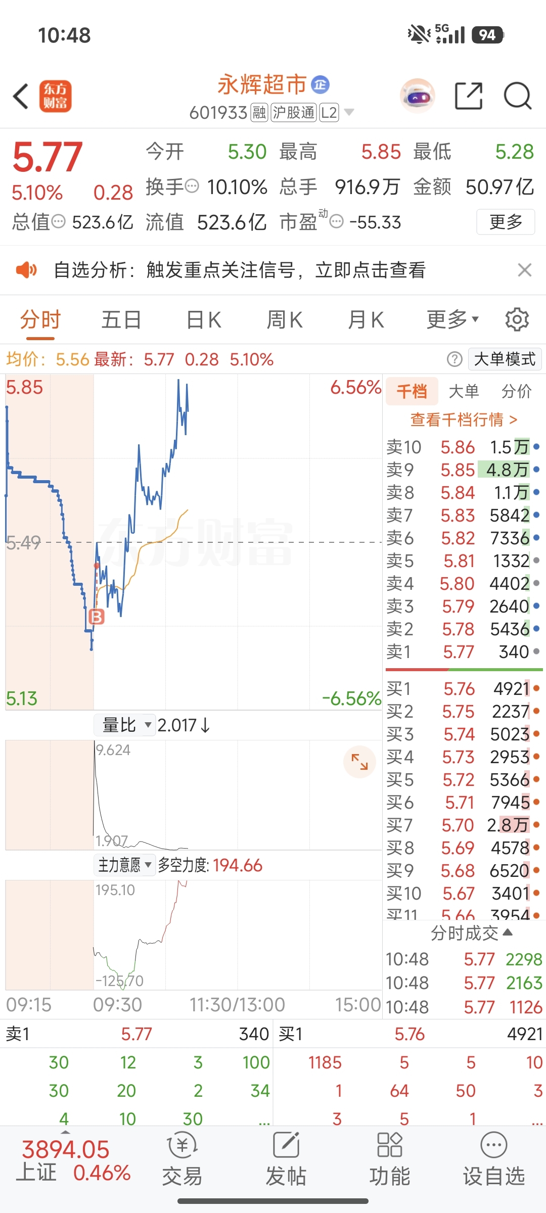 $永辉超市(SH601933)$ 本来说撤单,再底一点买的,今天操作不行