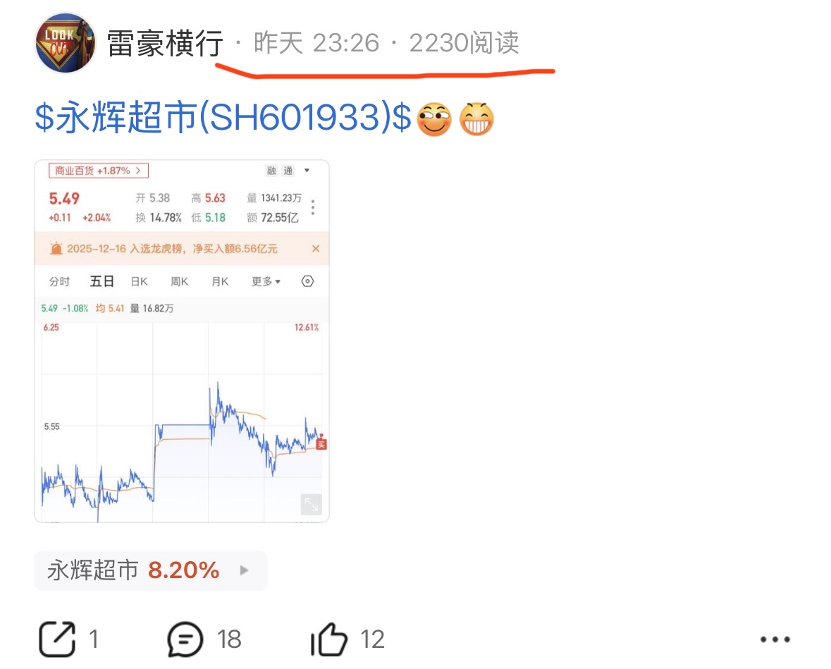 $永辉超市(SH601933)$ 我来了就是最大的利好