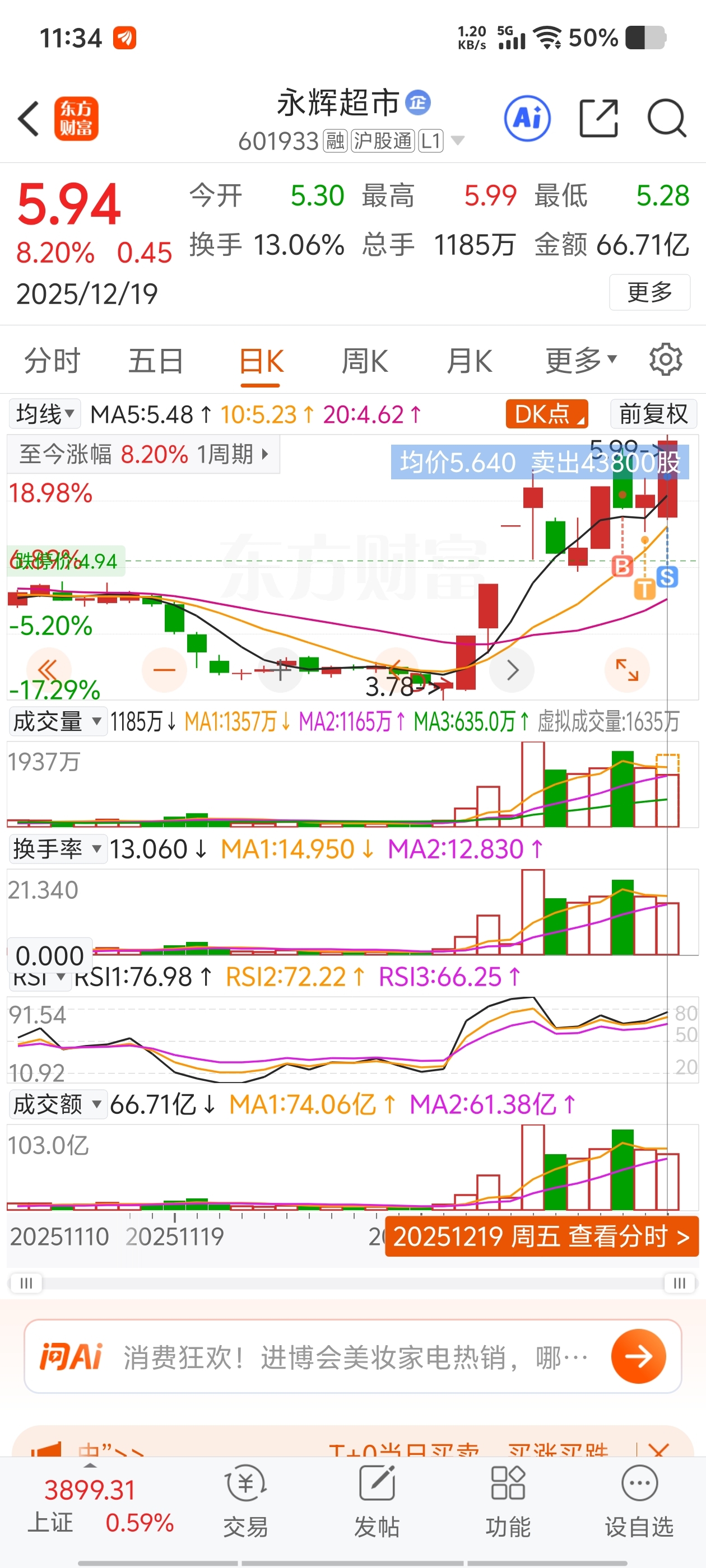$永辉超市(SH601933)$ 少卖五毛四少两万多块钱没了
