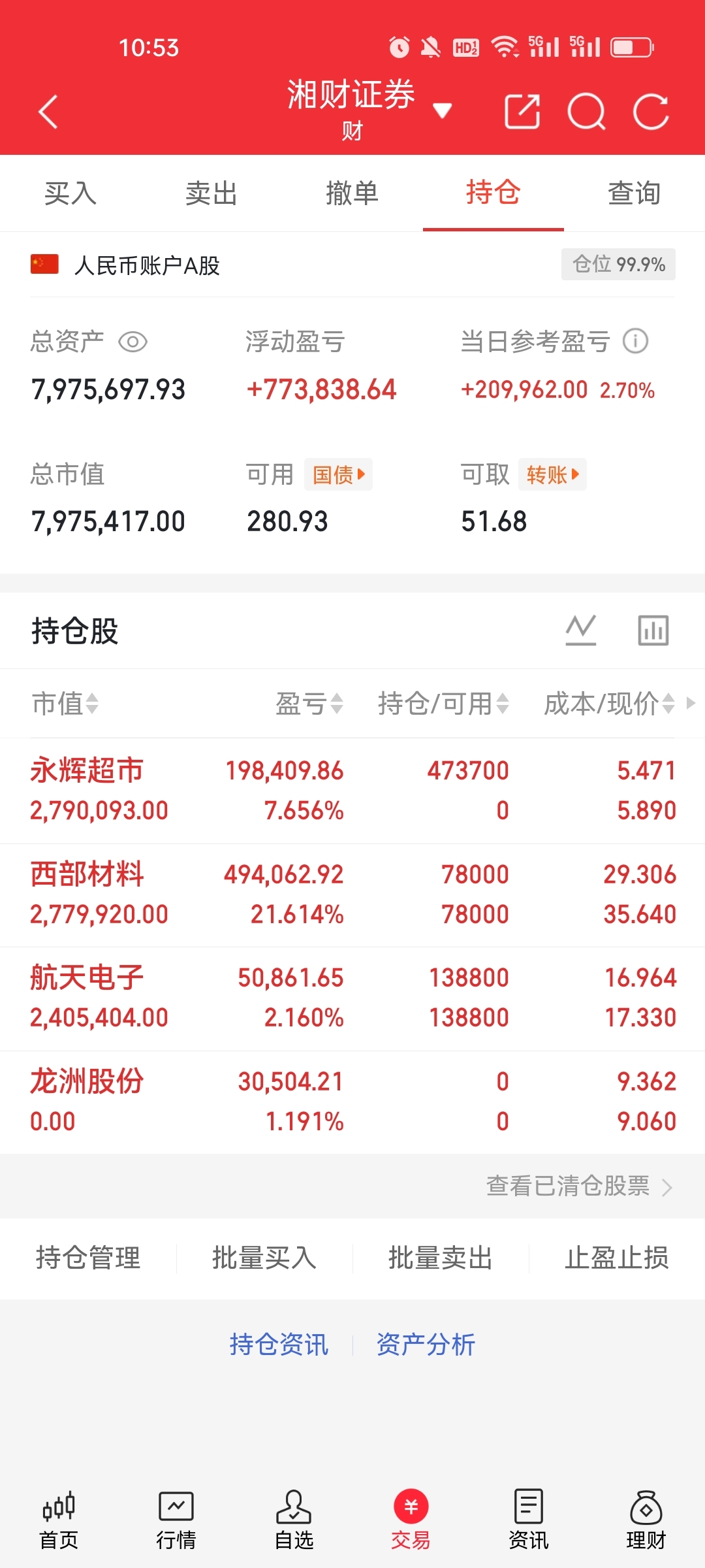 持有:$西部材料(SZ002149)$ 、$航天电子(SH600879)$