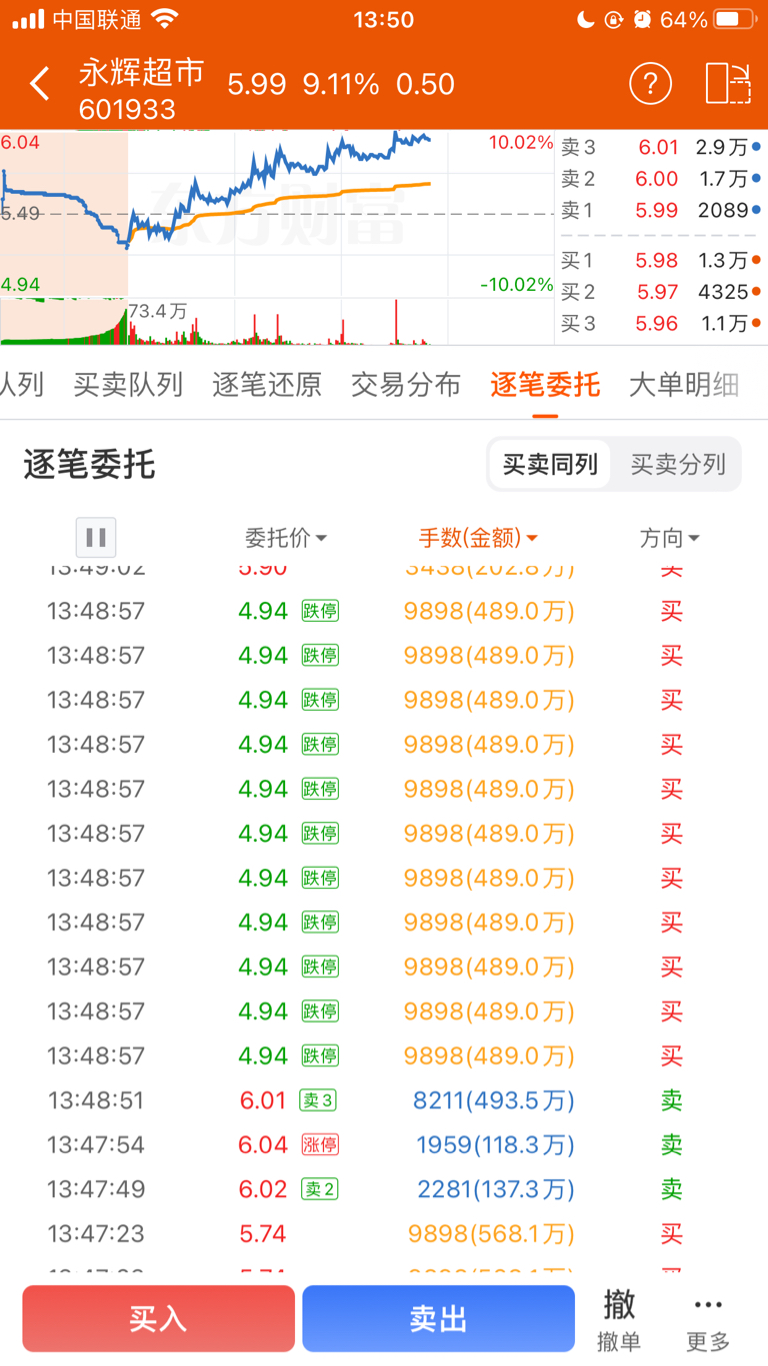 $永辉超市(SH601933)$ 看下这就是你们群总挂跌停单来增加单数让散户去高位接