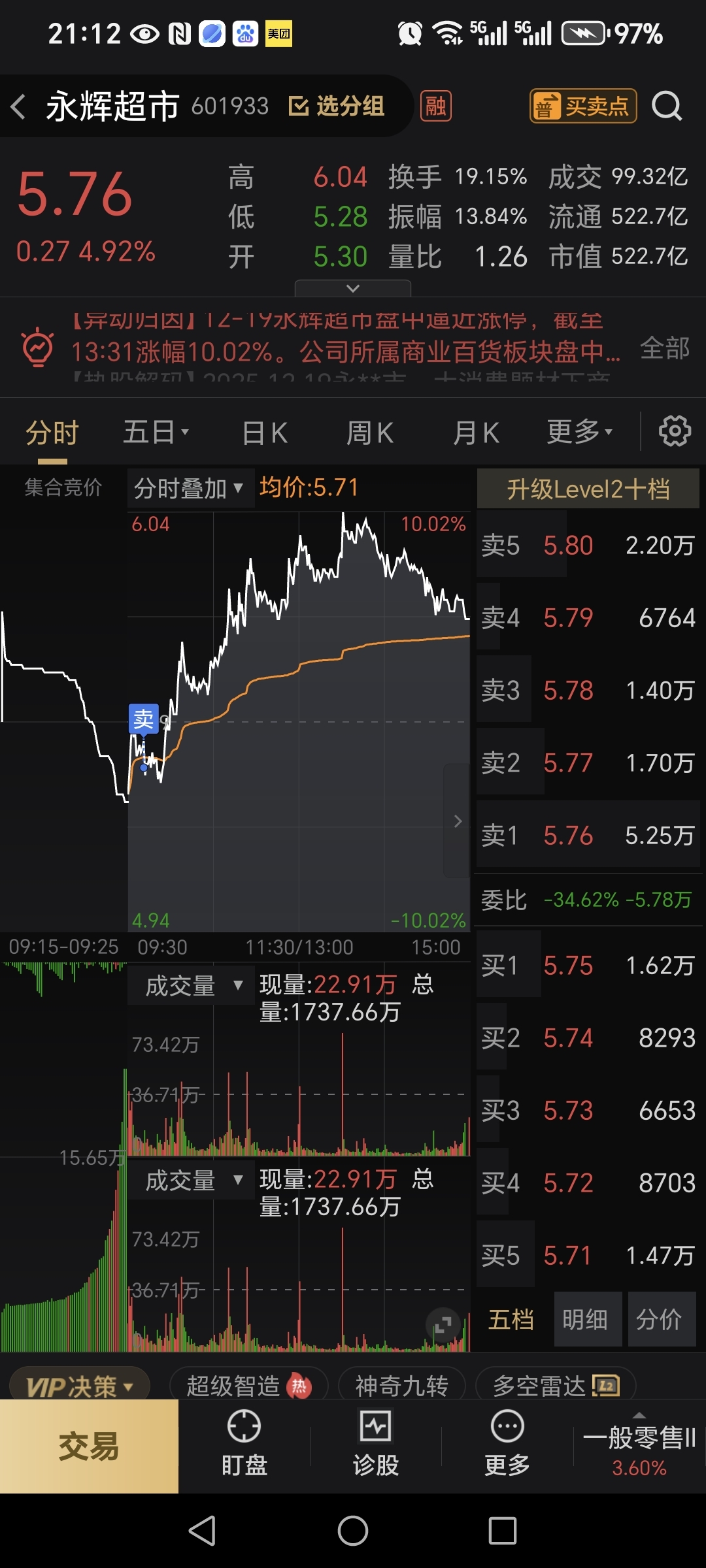 $永辉超市(SH601933)$ 我是 今天水下亏钱摔卖了 它今天盘中涨停过