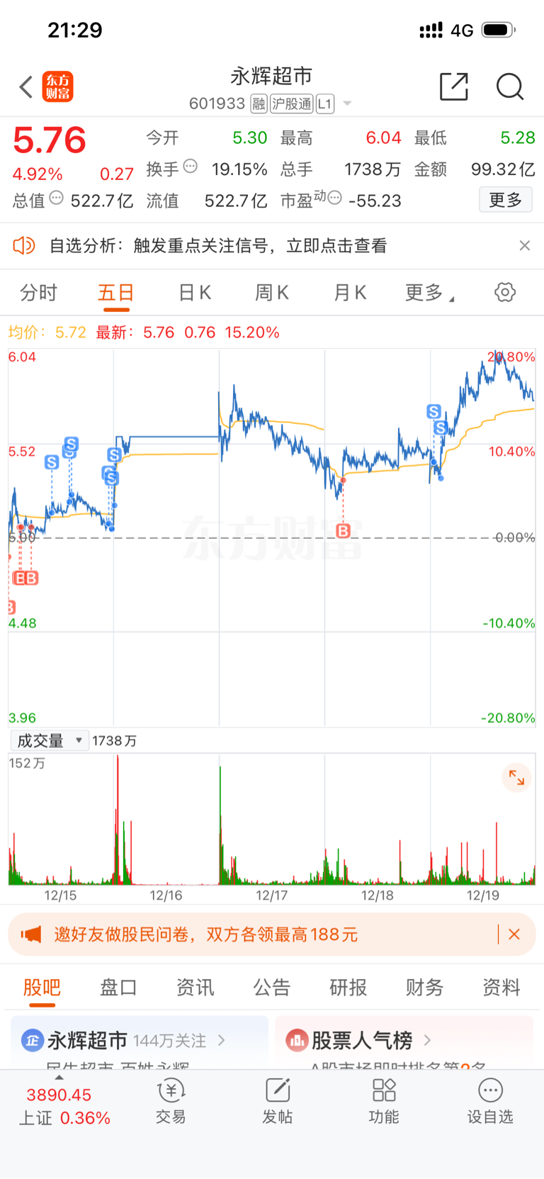 $永辉超市(SH601933)$ 预判了东百和百大今天封不住,但是卖在深水,难过了一天吃不下饭,虽然没亏