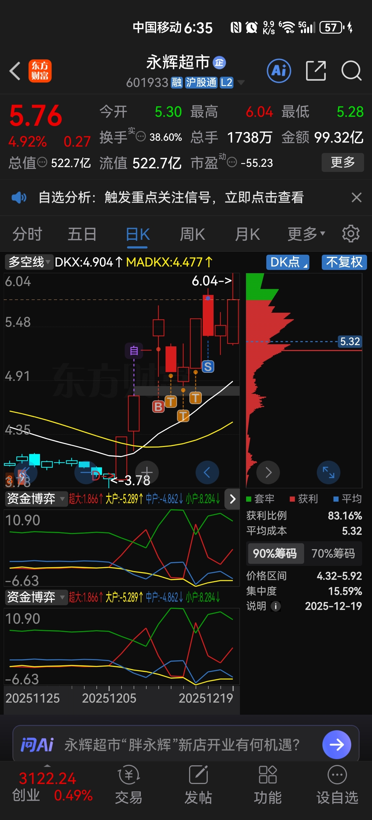 本来买商业航天卫星通信设备赚10个点多就是永辉超市你股害我亏了20个点,