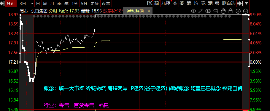 $东百集团(SH600693)$作为板块高标之一,在九牧王上海九百等个股强势的“反推”下被资金推至涨停。