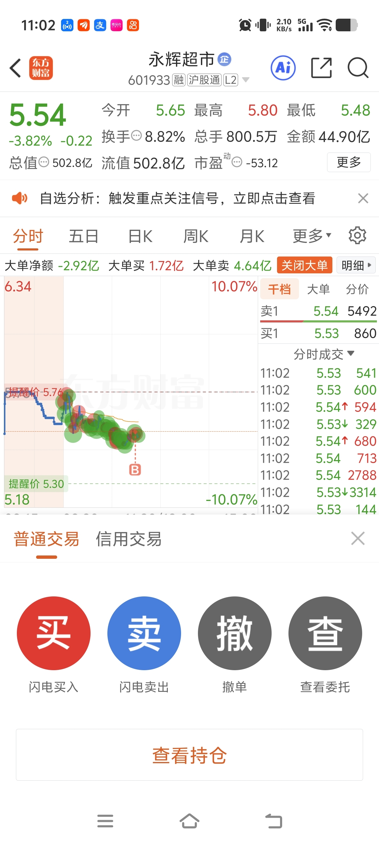 $永辉超市(SH601933)$ 买卖点能不能设置不要放在一起 老是按错 又全仓了永辉哇靠
