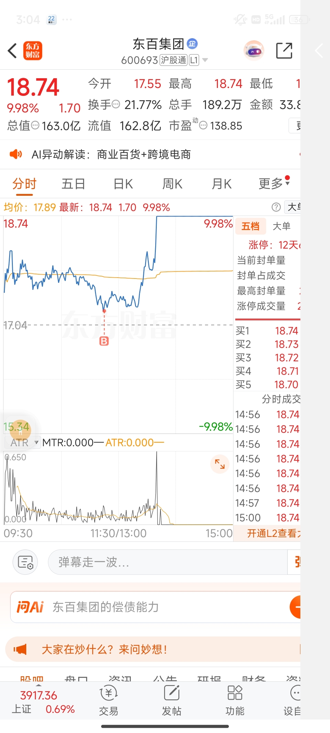 $永辉超市(SH601933)$ 小群跑了之后,这盘子大的永辉如一盘散沙,很难形成合力了。开盘其他股冲涨停,这个弱的一匹,我就只都知道今天不行。远不如东百强势。所以我上午卖掉一半永辉,去了东百。